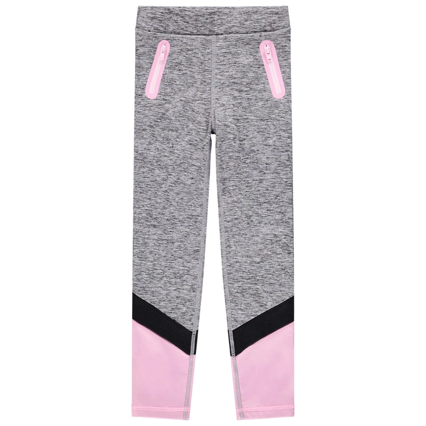 Legging de sport uni pour fille. Taille élastiquée pour plus de confort lors des activités. Bandes contrastées. Inscription printée au dos sous la taille. 2 poches zippées devant.