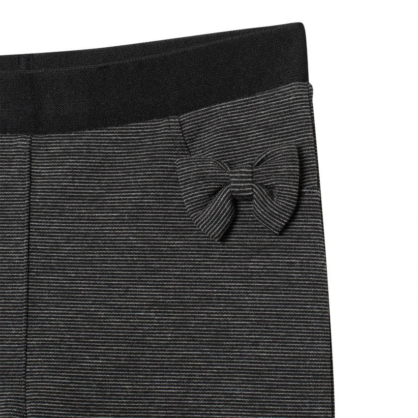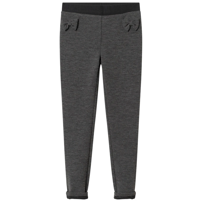 Legging en maille chinée légèrement brillante. Taille élastiquée. Noeuds cousus sur le devant.