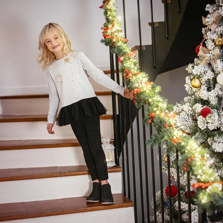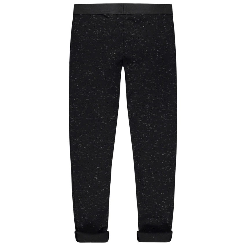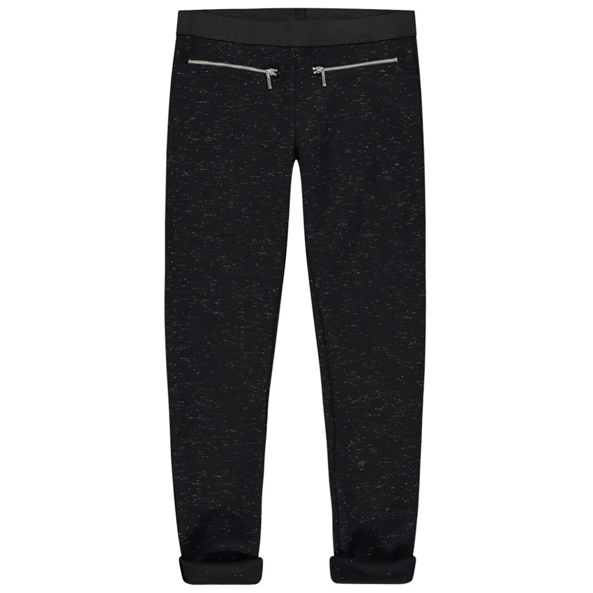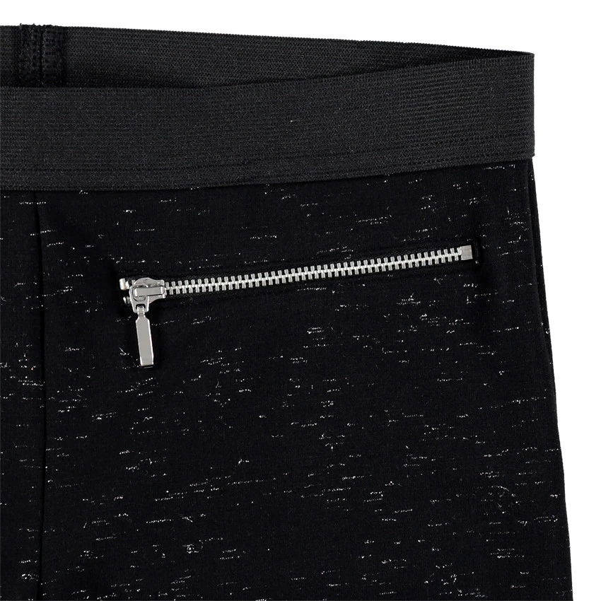 Legging en maille chinée de fil brillant. Taille élastiquée. 2 zips fantaisie sur le devant.