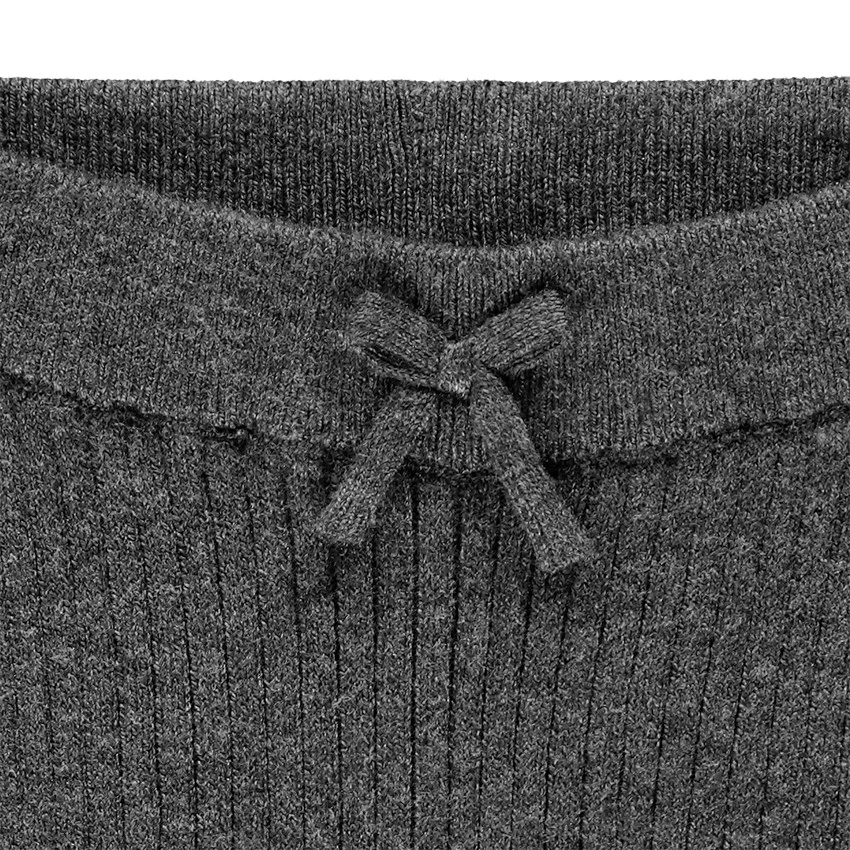 Legging en tricot. Effet côtelé. Coloris uni. Taille élastiquée en bord-côte. Nœud décoratif sur le devant.