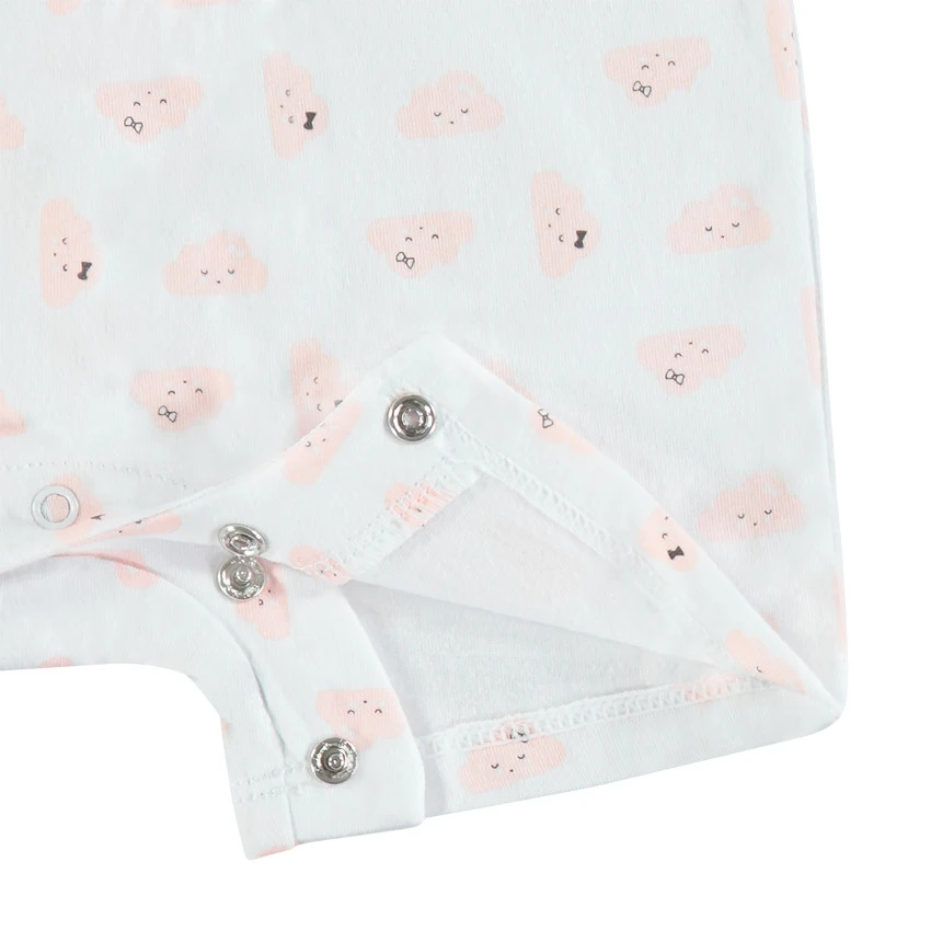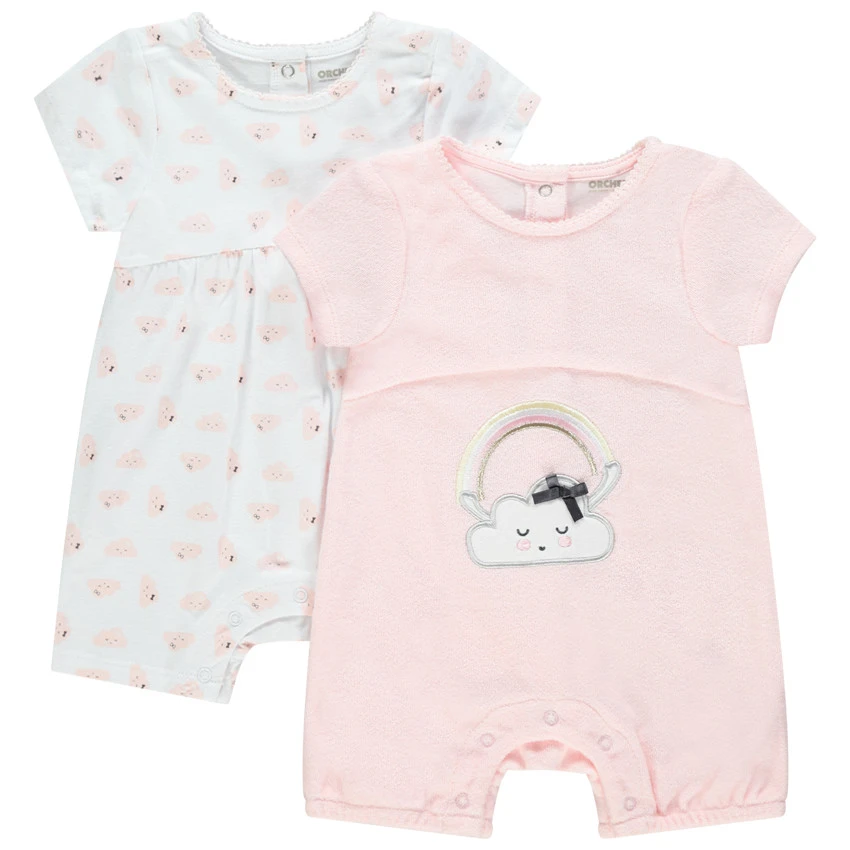 Lot de 2 combinaisons courtes en coton. Encolure ronde à finition festonnée. Entrejambe et dos pressionnés.