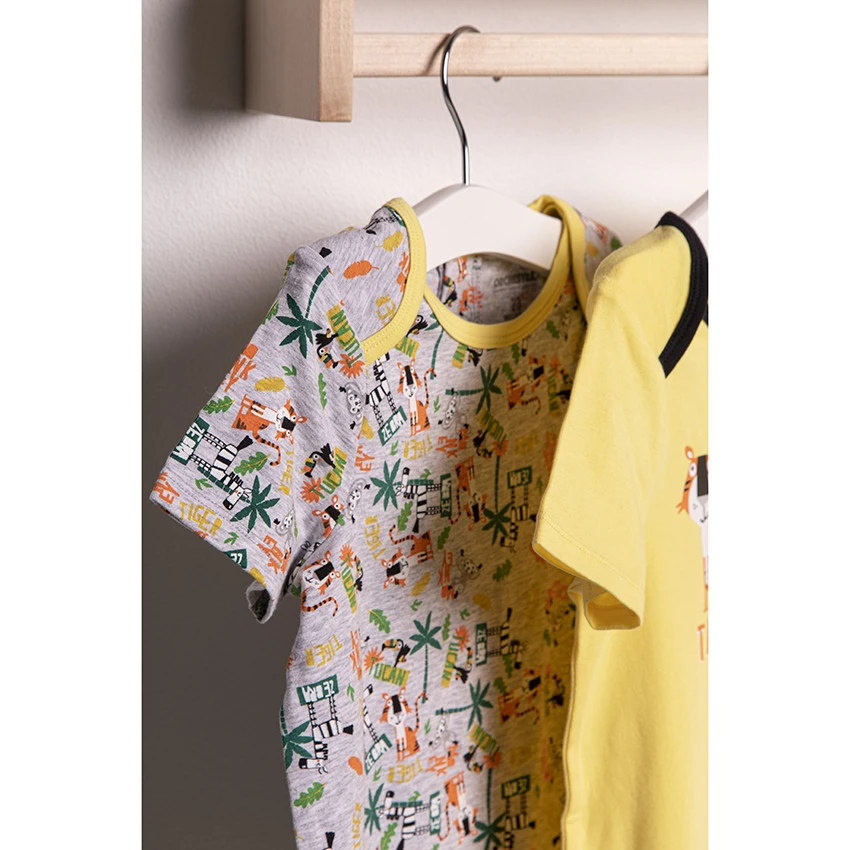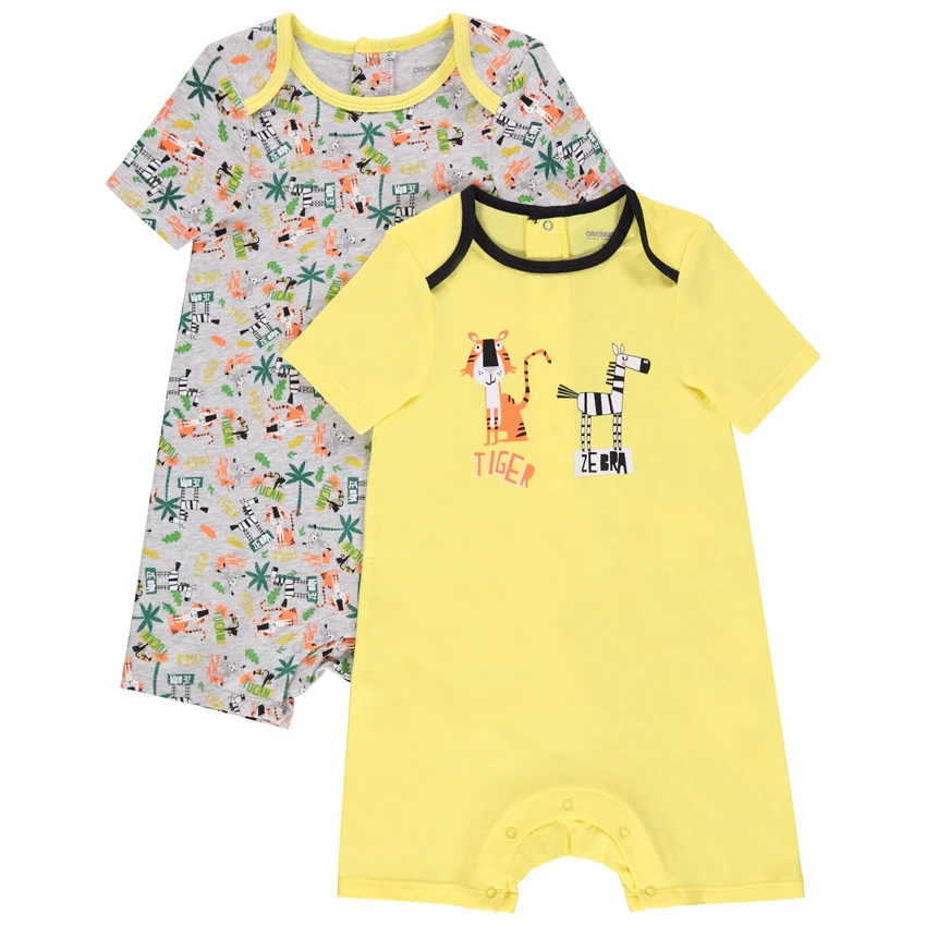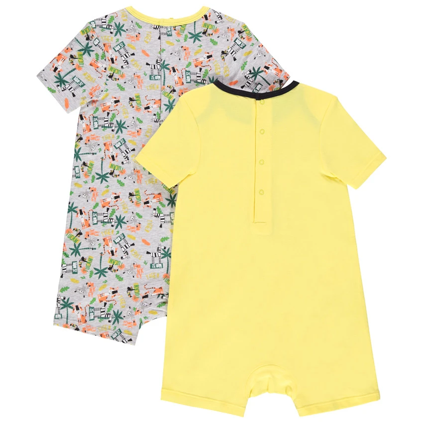 Lot de 2 combinaison courtes. Encolure ronde en bord-côte. Encolure US. Ouverture pressionnée à l’entrejambe.