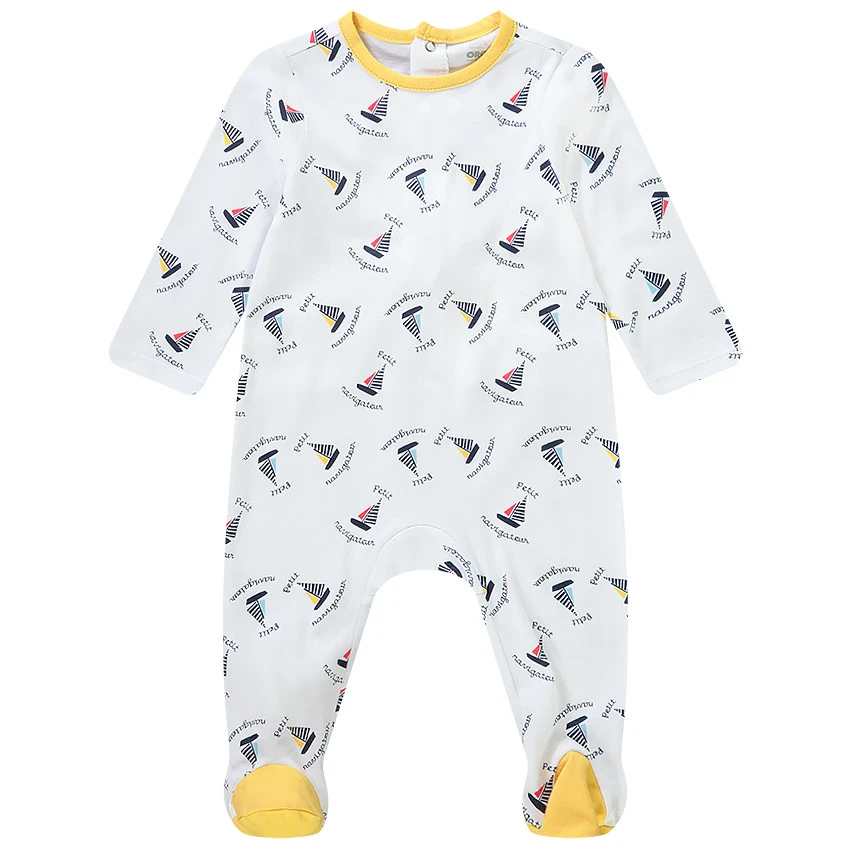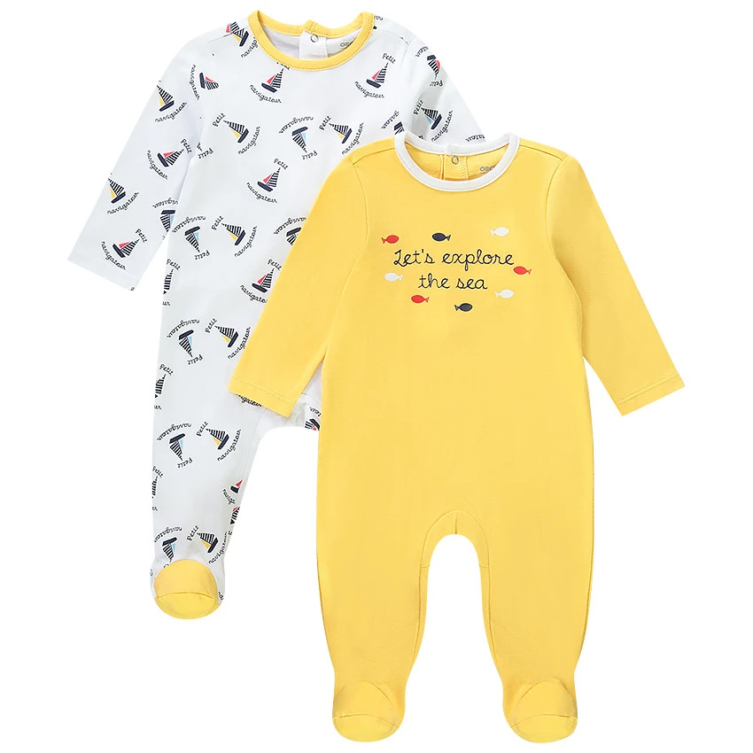 Lot de 2 dors-bien en jersey. Encolure ronde contastée. Manches longues. Ouverture pressionnée à pont dans le dos. Pieds fermés. Différents coloris et motifs.