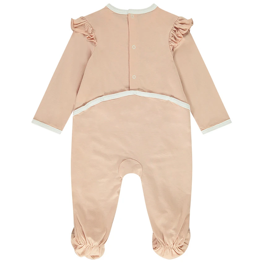 Encolure ronde et emmanchures en bord côte contrasté. Manches longues avec épaules volantées. Ouverture pressionnée sur le devant et à l’entrejambe. Print Harry Potter sur le devant. Pieds fermés.