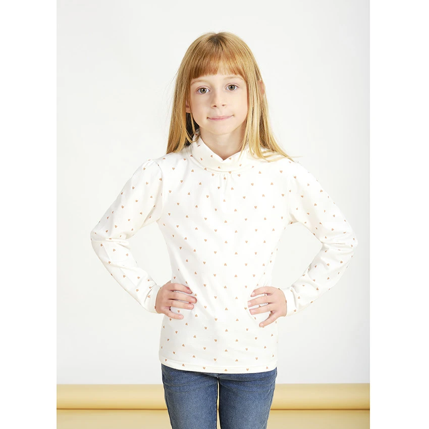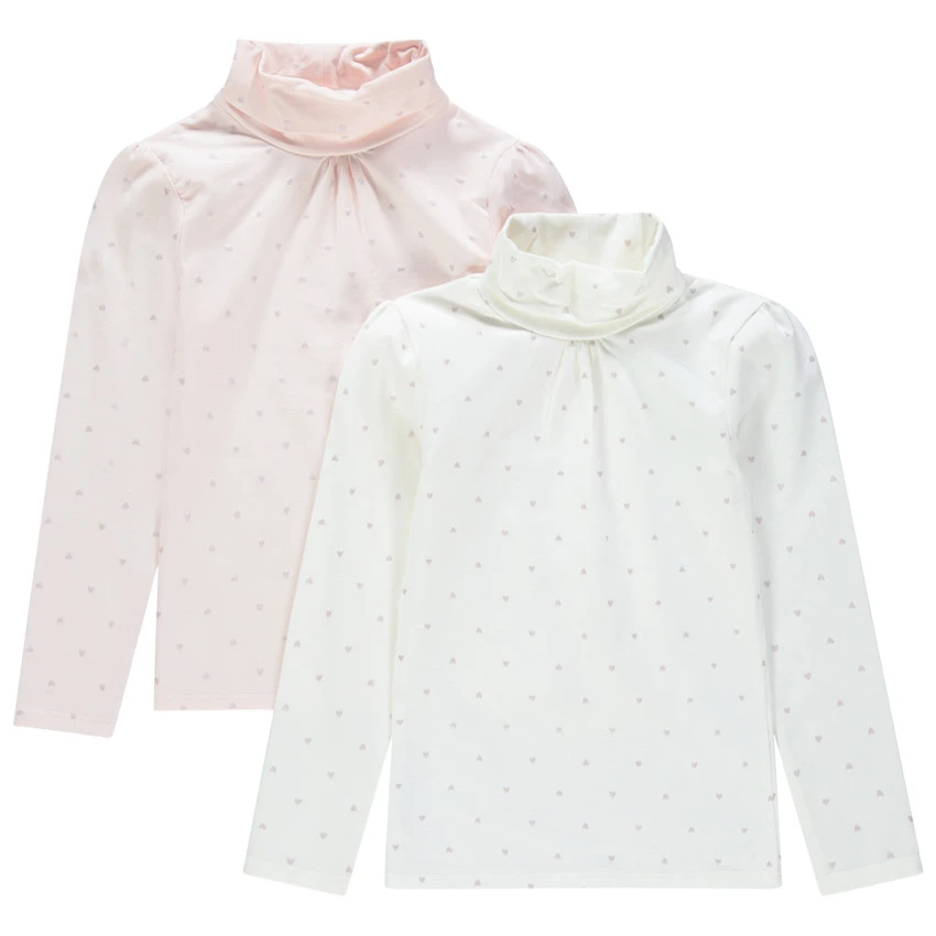 Lot de 2 sous-pulls à petits coeurs all-over. Col roulé. Fronce sous l’encolure.