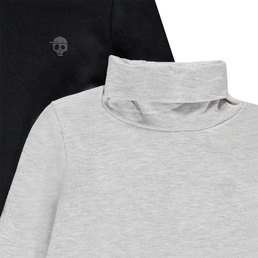 Lot de 2 sous-pulls unis en coton bio. Col roulé. Logo printé en ton sur ton sur la poitrine.