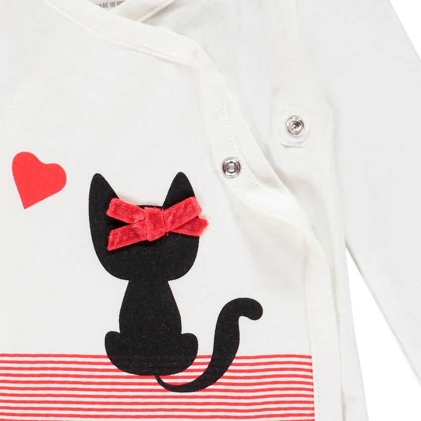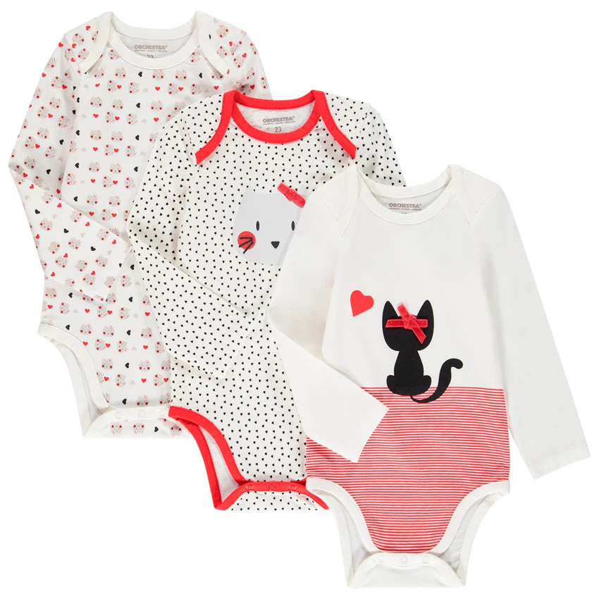 Lot de 3 bodies manches longues pour bébé fille. Ouverture pressionnée croisée devant du 1 au 6 mois. Emmanchures US du 9 au 36 mois.