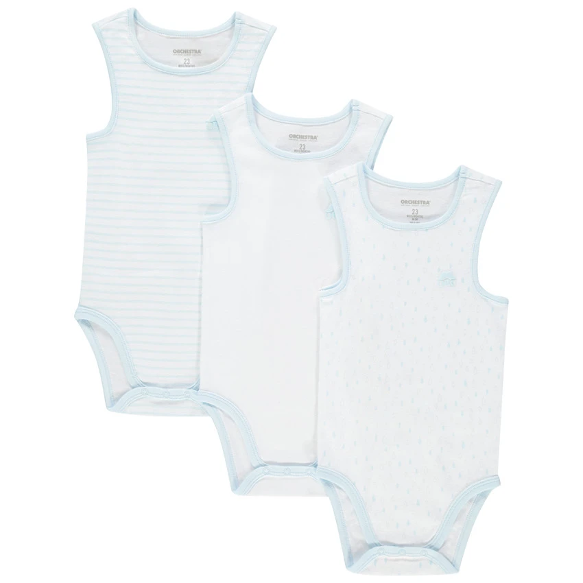 Lot de 3 bodies sans manches en coton. Encolure ronde en bord-côte. Entrejambe pressionné. Logo reliéfé sur la poitrine.