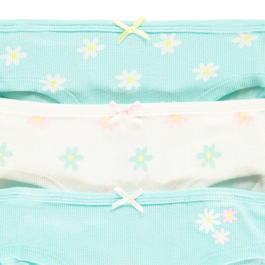 Lot de 3 culottes côtelées. Taille élastiquée. Noeud fantaisie sur le devant. Imprimé fleuri. Coloris et imprimés différents selon le modèle.