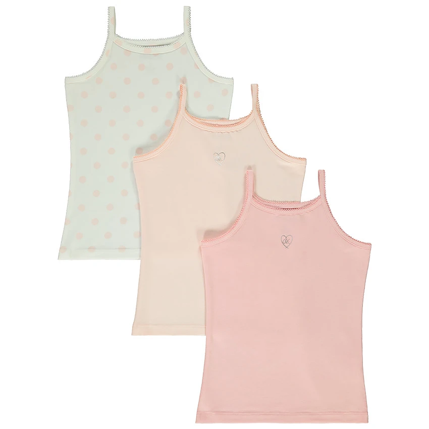 Lot de 3 maillot de corps. Encolure ronde, bretelles fines et emmanchures ondulées. Coloris et imprimé différents selon le modèle.