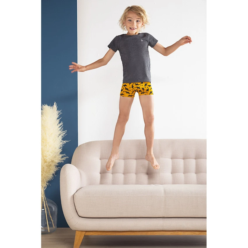 Lot de 4 boxers en coton. Taille élastiquée à inscriptions contrastées en jacquard.