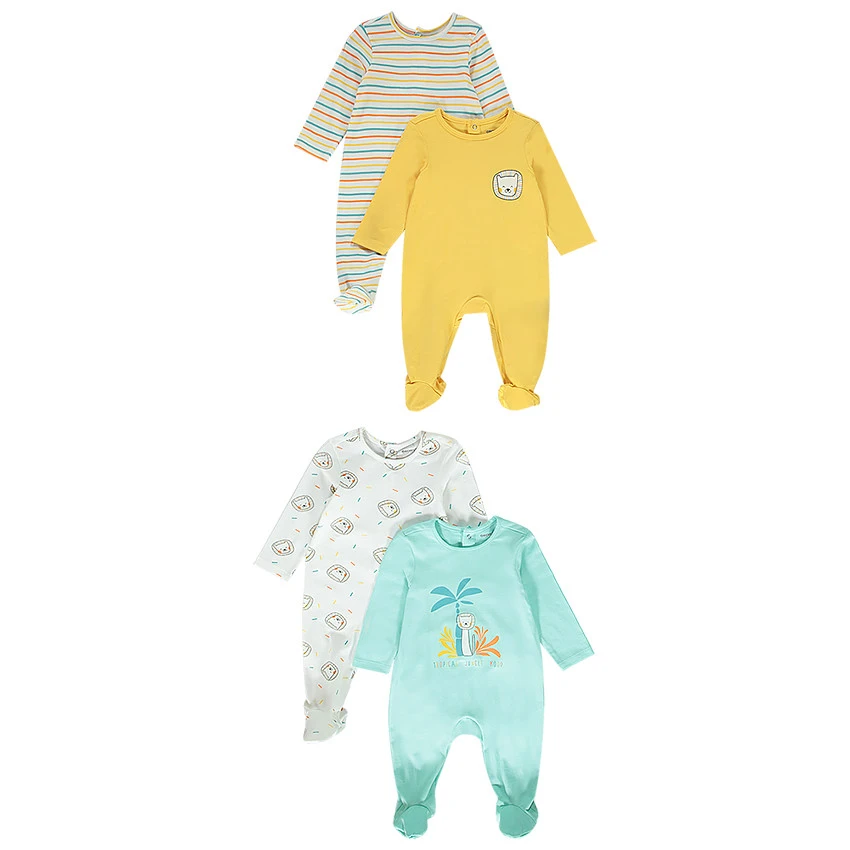 Lot de 4 dors-bien manches longues. Encolure ronde. Ouverture pressionnée dans le dos. Pieds fermés. Coloris et imprimés différents selon le modèle.