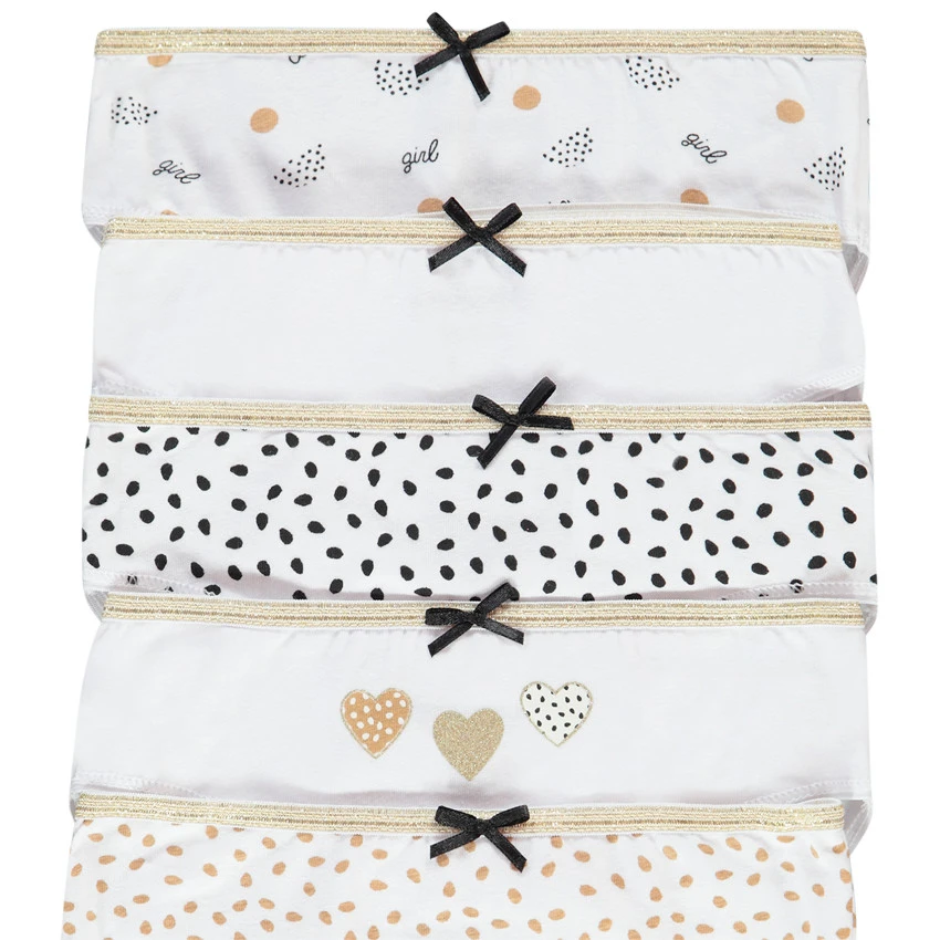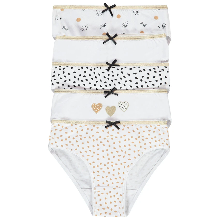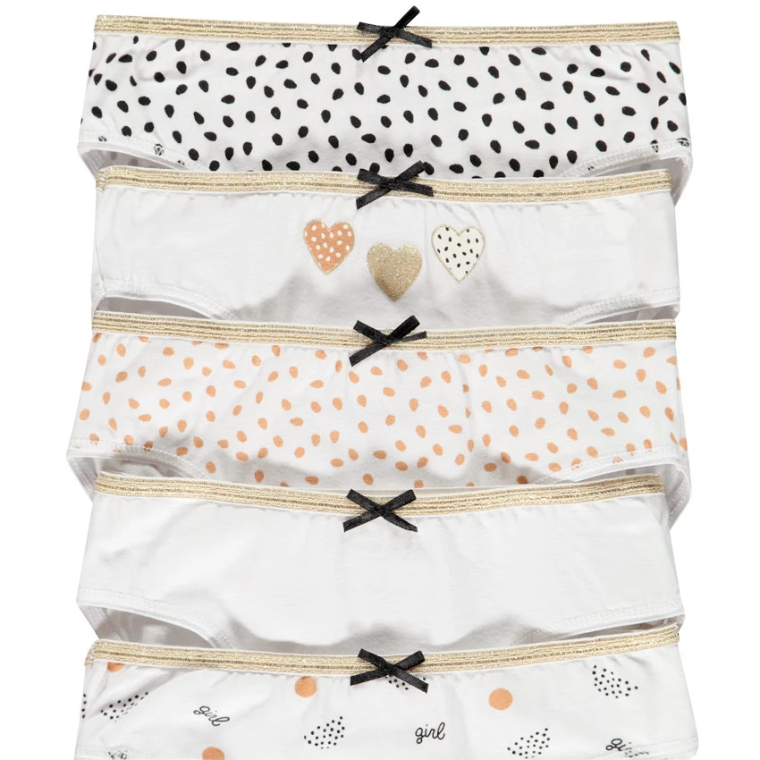 Lot de 5 culottes. Taille élastiquée contrastée. Noeud sur l’élastique.