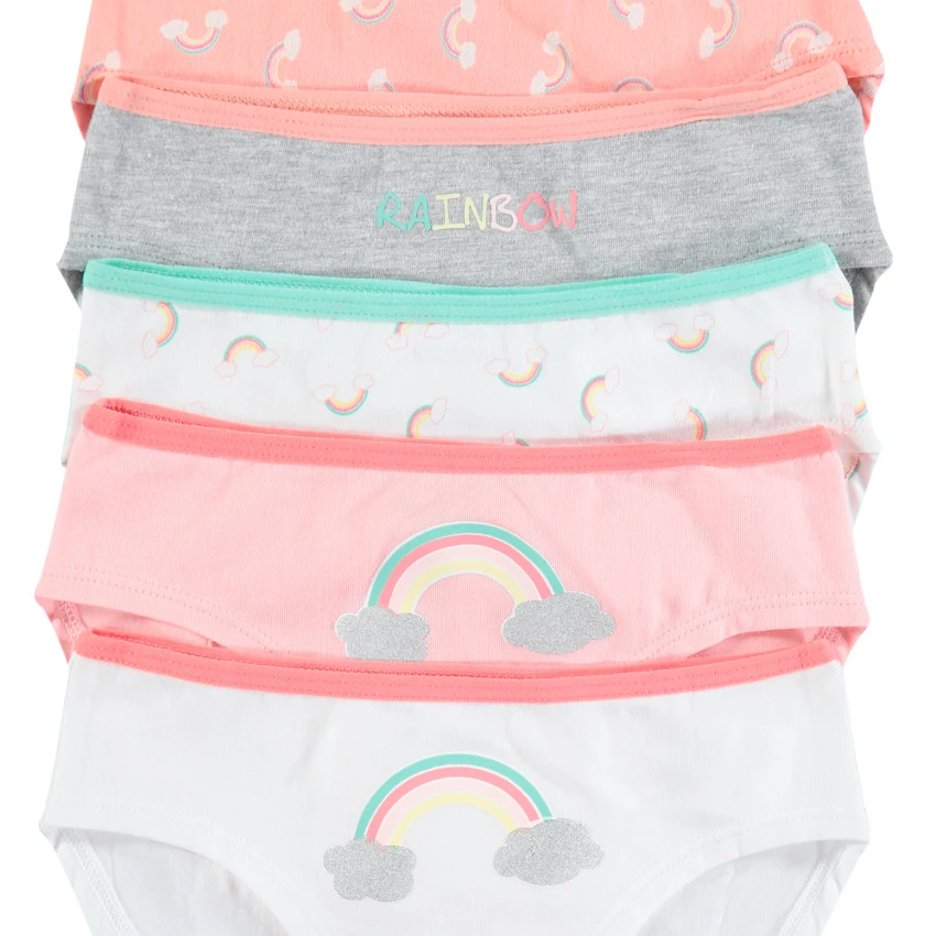 Lot de 5 culottes en coton. Taille élastiquée contrastée.