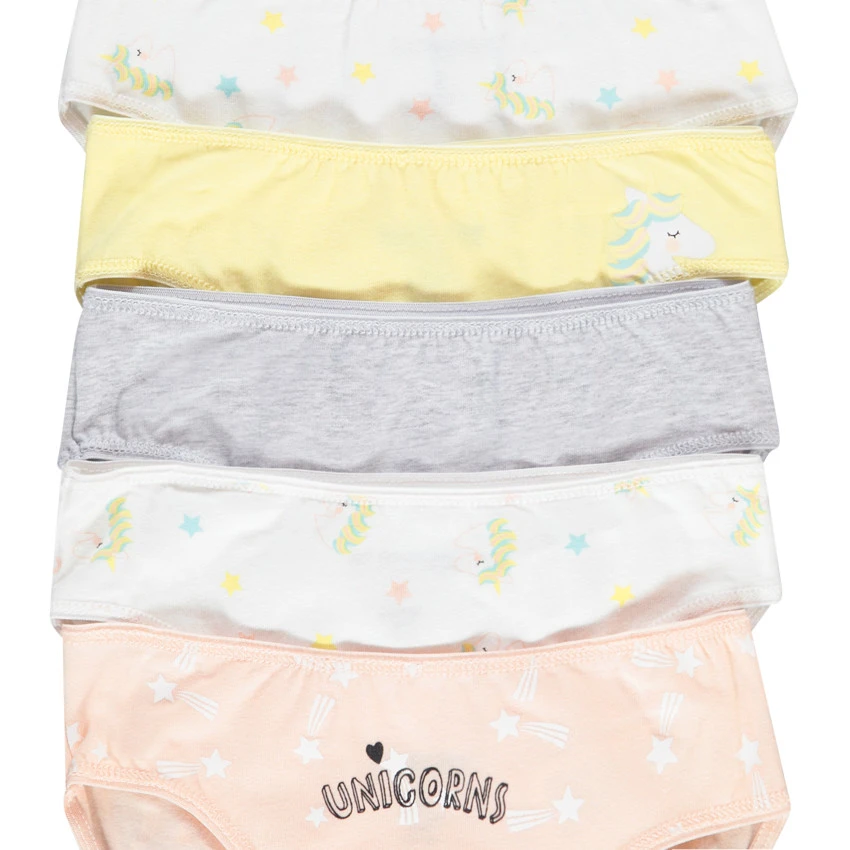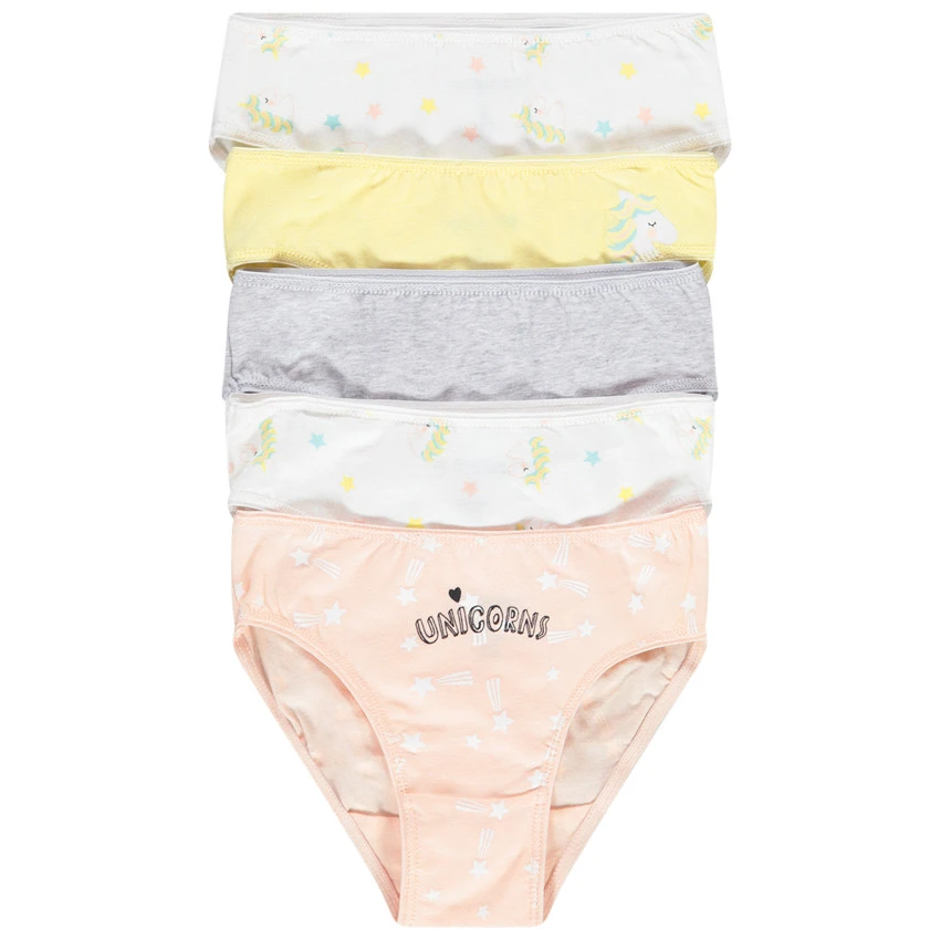 Lot de 5 culottes en coton. Taille élastiquée très confortable. Licornes imprimées.