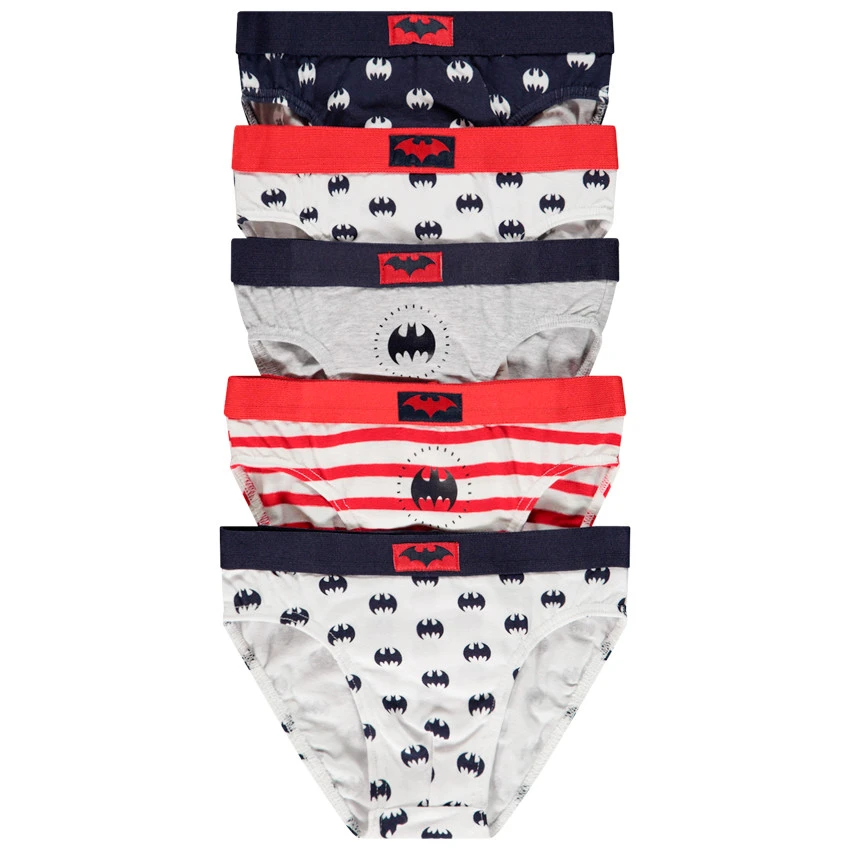 Lot de 5 slips Batman. Taille élastiquée avec patch logo Batman.