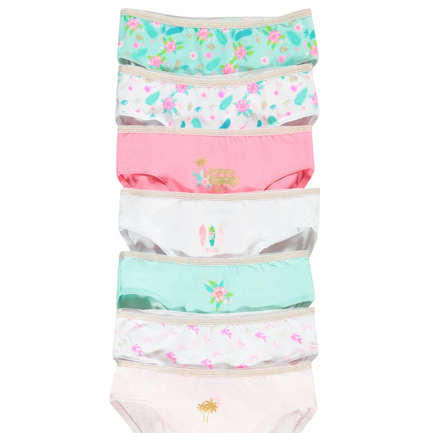 Lot de 7 culottes imprimées.Taille élastiquée. Motifs fleuris. Couleurs pastels.