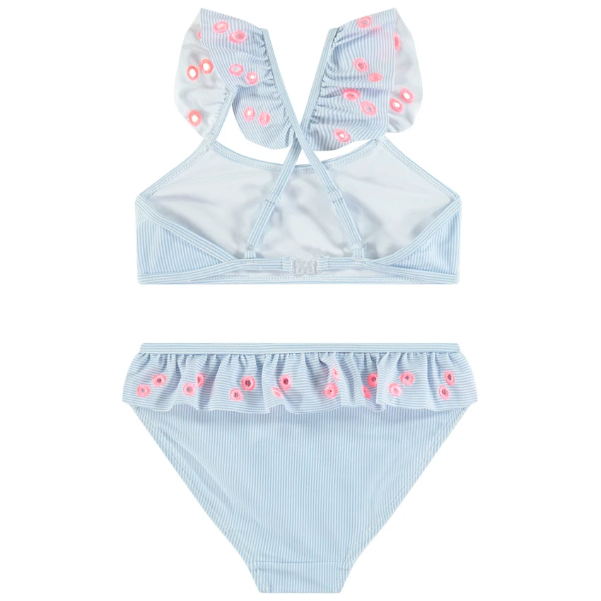 Brassière à bretelles volantées et trous à contours brodés croisées au dos.