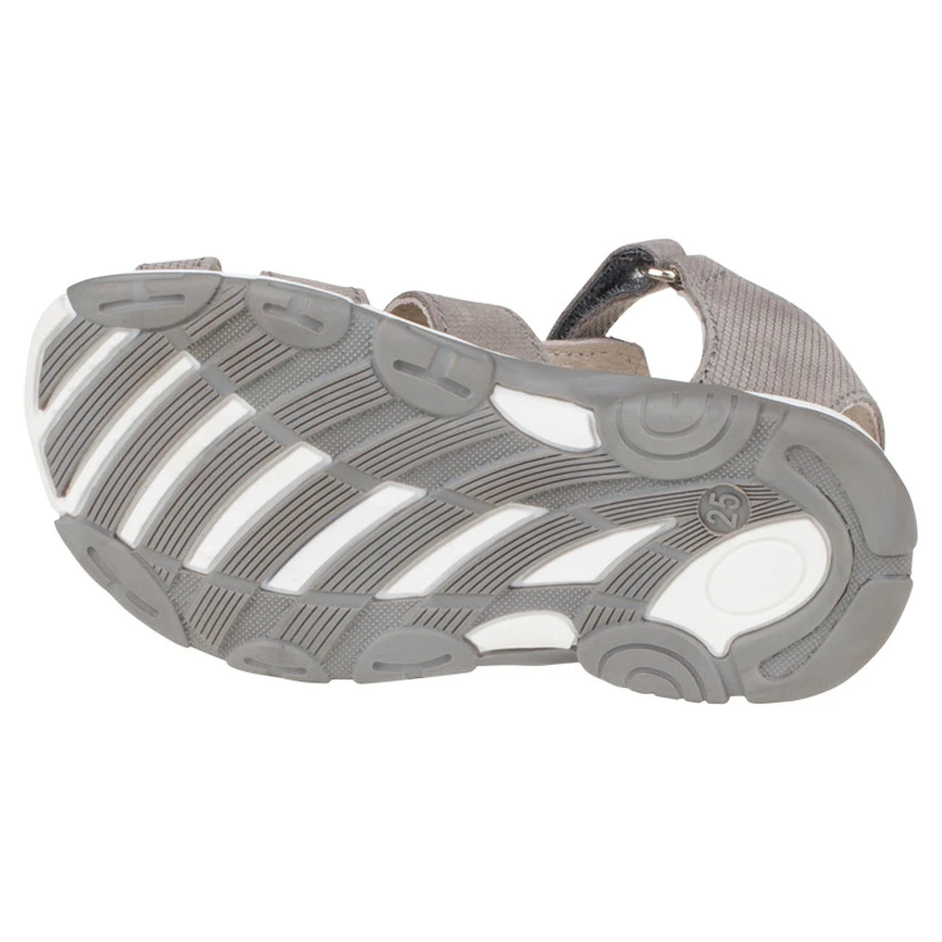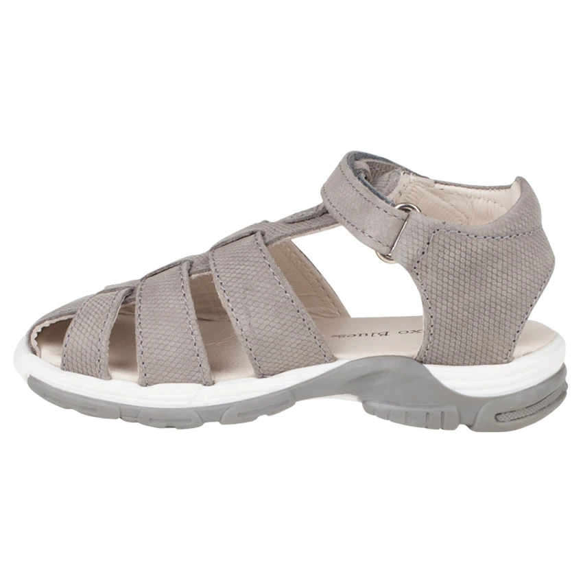 Nu-pieds en cuir unis. Ouverture par lanière à scratch devant. Doublure intérieure en cuir. Bourrelet de renfort au col pour plus de confort. Empiècement au bout de la chaussure pour protéger les orteils. Semelle en caoutchouc souple contrastée.