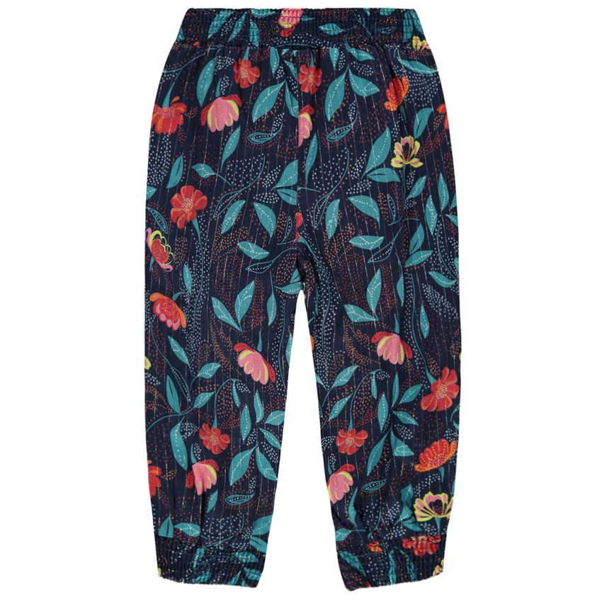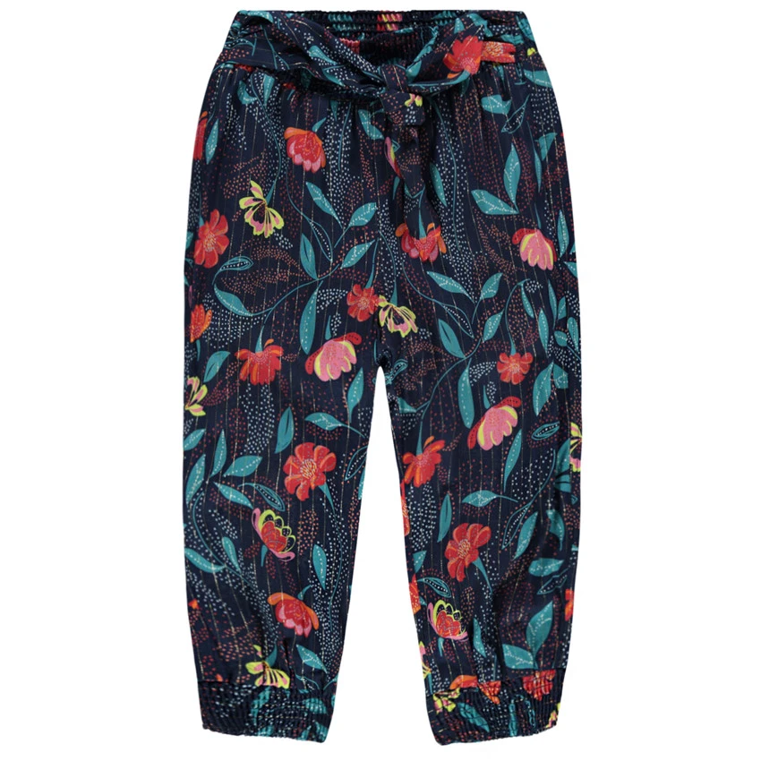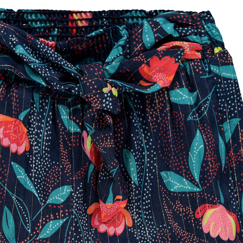 Pantacourt large à imprimé floral all-over. Fines rayures dorées. Taille élastiquée avec ceinture à nouer devant. Chevilles élastiquées. 2 poches devant.
