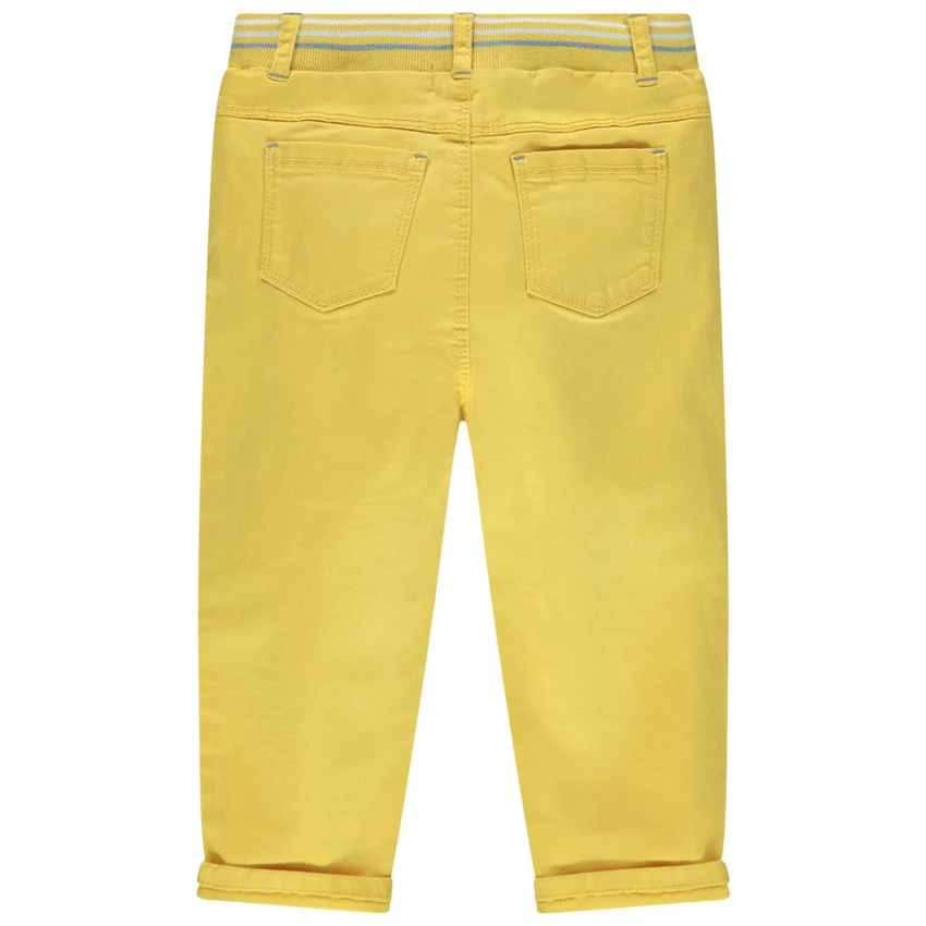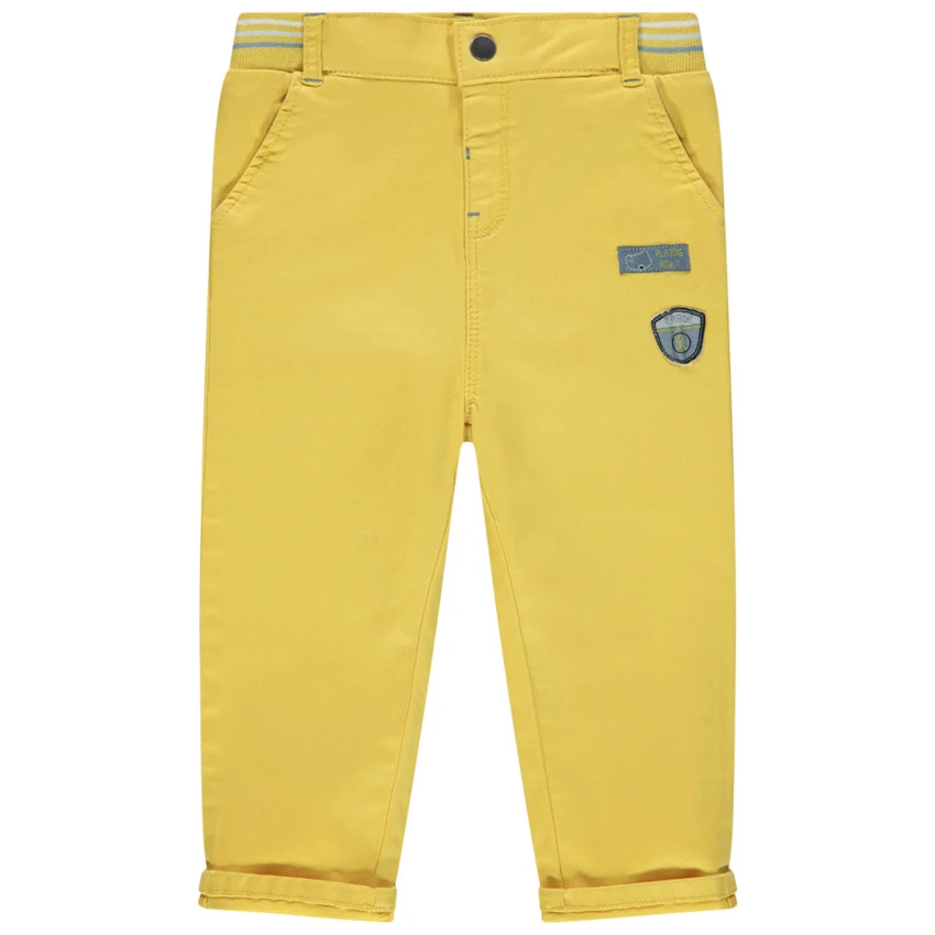 Pantalon jaune uni. Taille élastiquée à passants. 2 poches italiennes devant.Badges patchés devant.2 poches plaquées au dos.