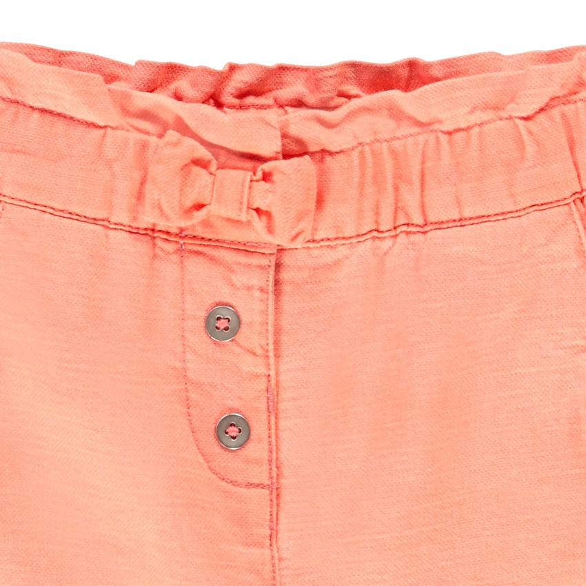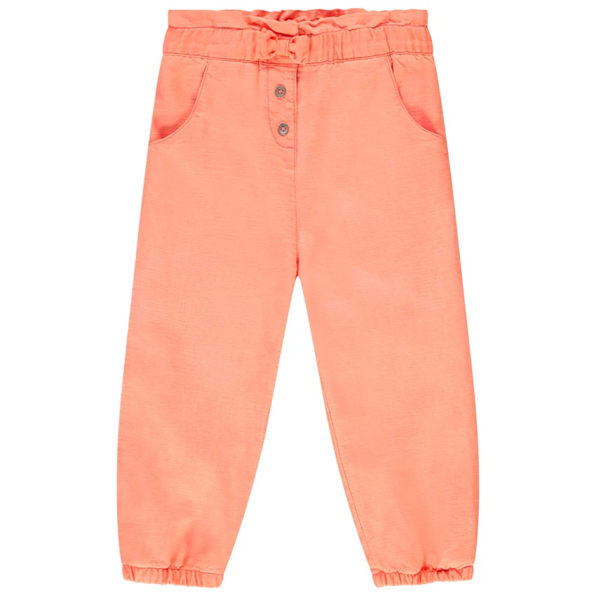 Pantalon en viscose et coton. Effet blanchi. Taille élastiquée. Boutons sur le devant. 2 poches cavalières. Chevilles élastiquées.