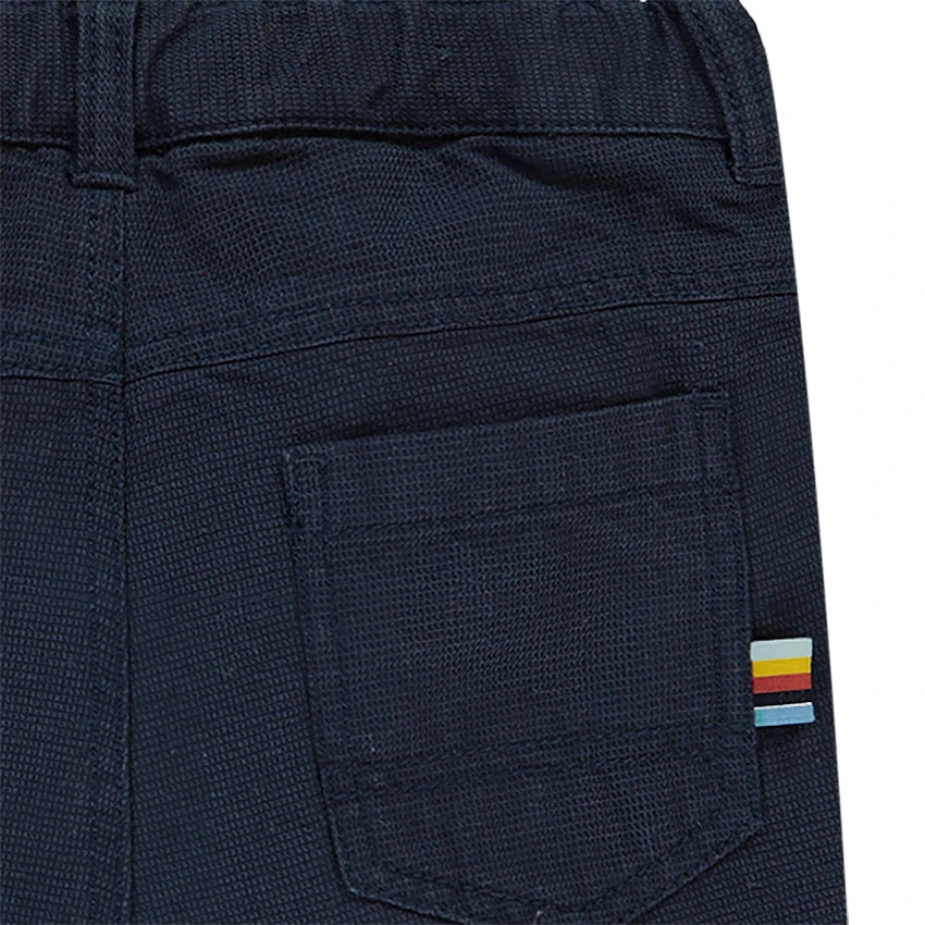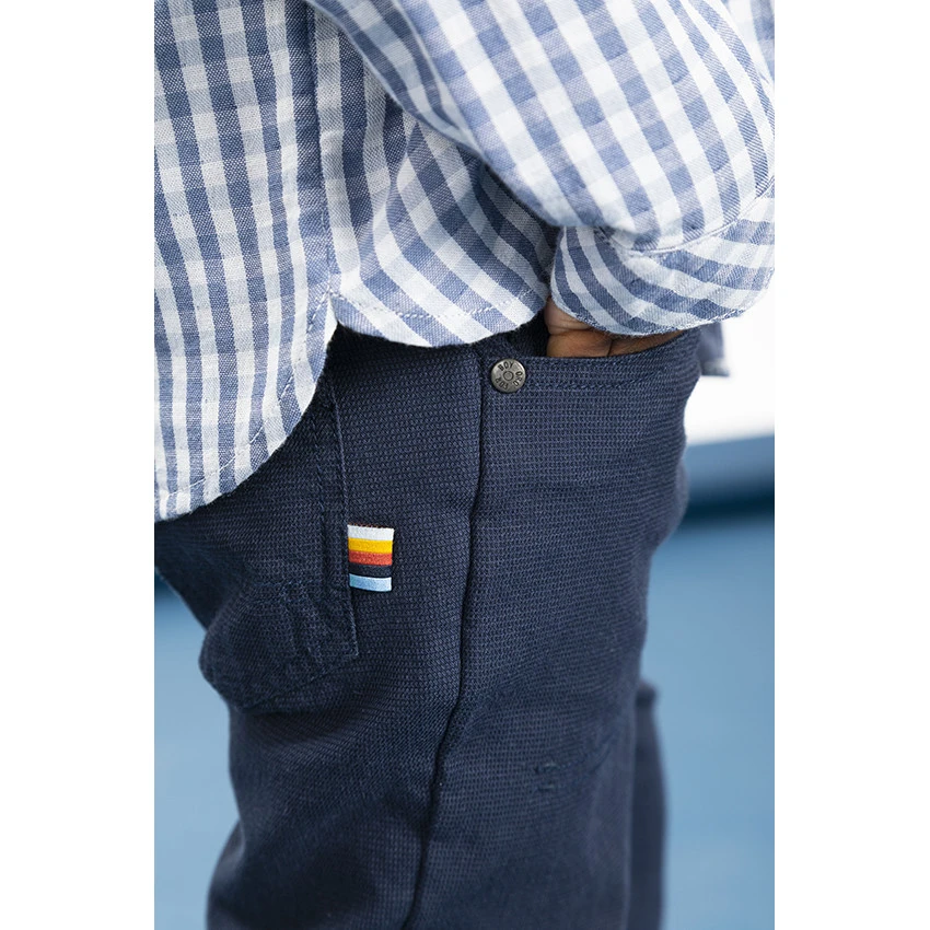 Pantalon en coton. Doublure en coton. Taille élastiquée. Passant de ceinture. Ouverture boutonnée. 2 poches cavalières. 2 poche à l’arrière. Etiquette fantaisie.