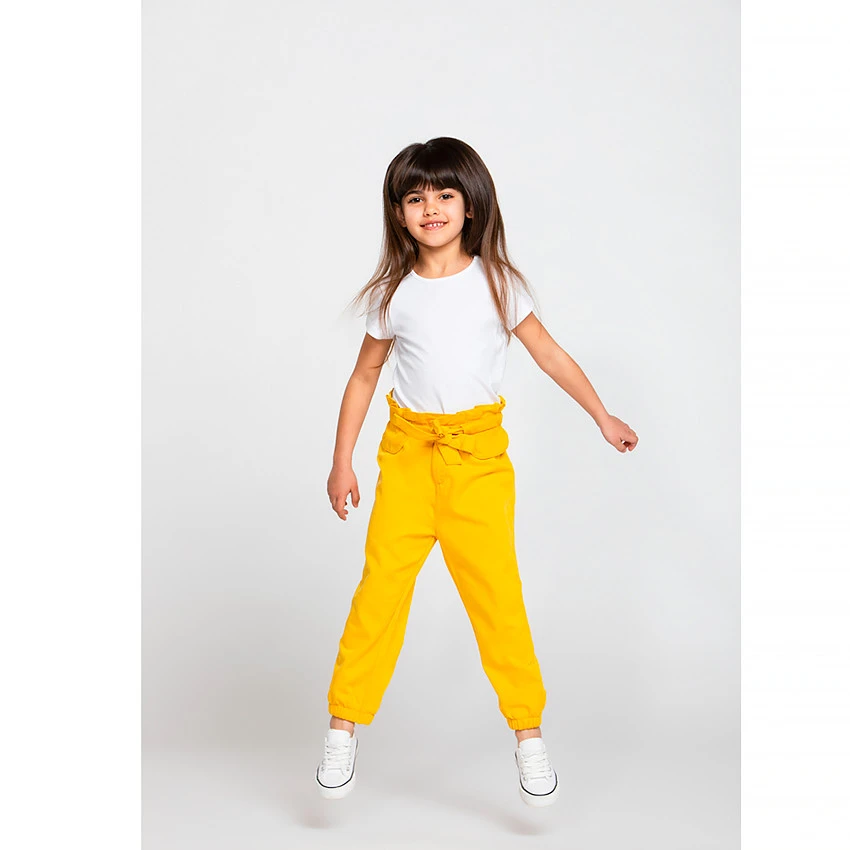 Pantalon en lyocell. Taille en volant. Noeud à la taille. 2 poches sur le devant. Chevilles élastiquées.
