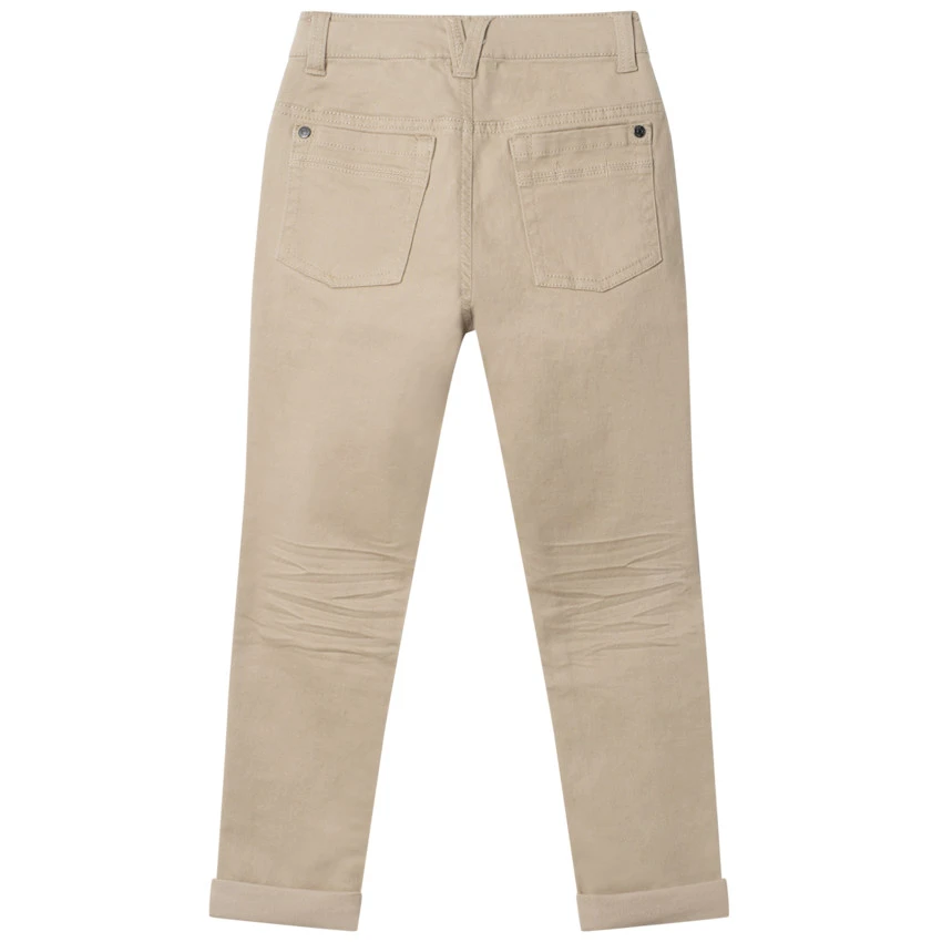 Pantalon en twill uni. Taille à passants ajustable de l’intérieur. Effet crinkle. 2 poches cavalières et 1 poche ticket. 2 poches plaquées au dos.