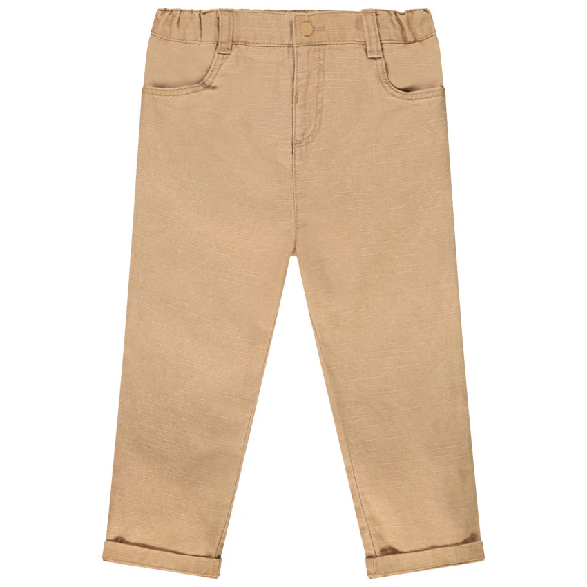 Pantalon en toile uni. Coupe slim. Taille à passants ajustable de l’intérieur. Ouverture boutonnée. 2 poches cavalières. Effet crinkle. 2 poches plaquées au dos.