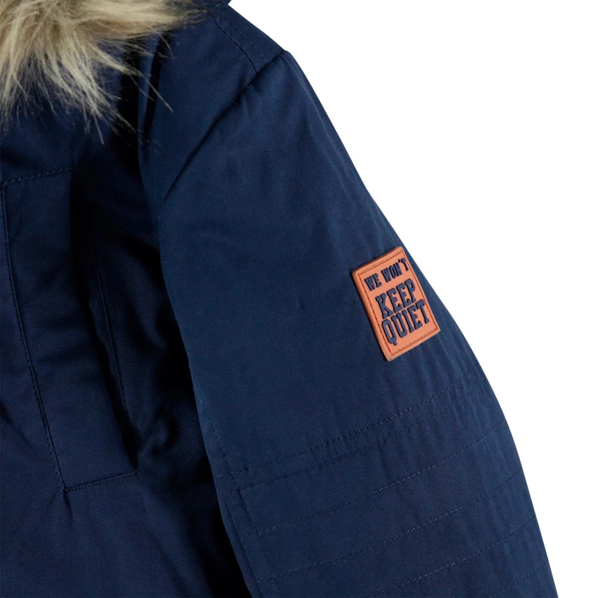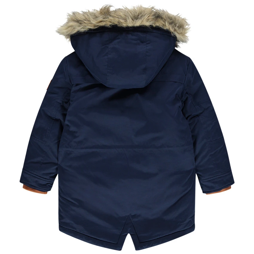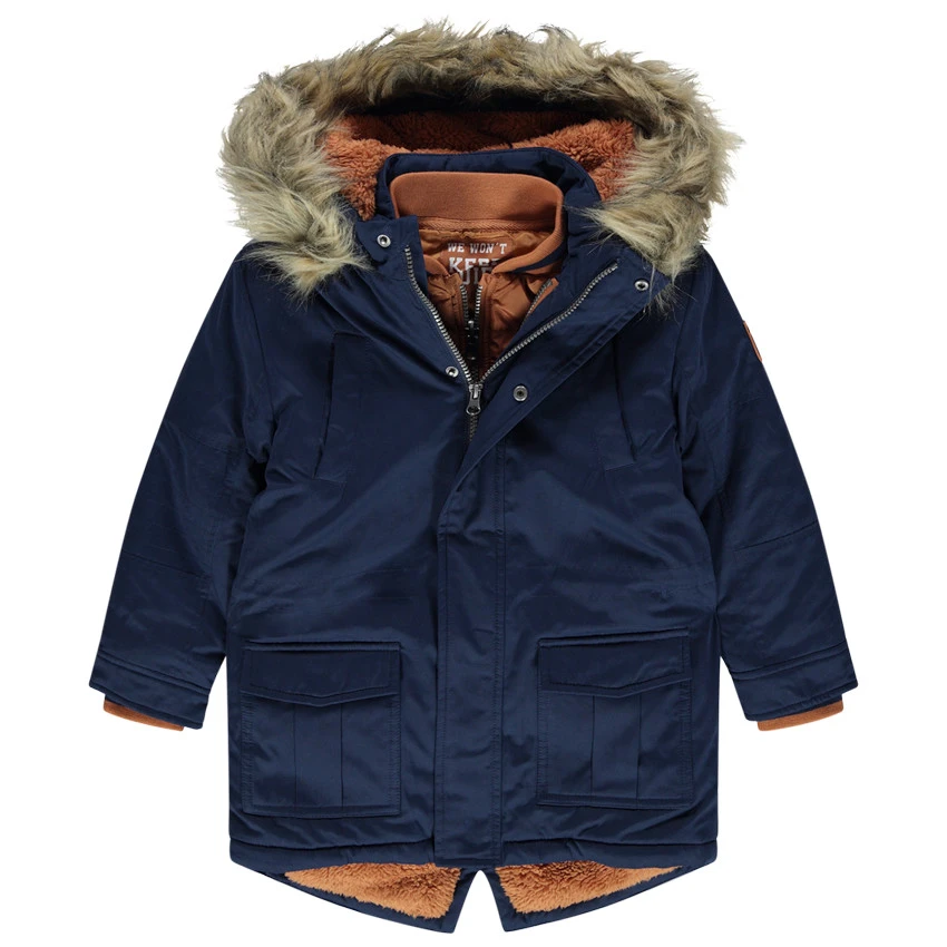 Parka 2 en 1 en toile. Capuche avec fausse fourrure amovible. 2 poches coupées sur le haut de la parka. 2 poches à rabat sur le devant. Ouverture zippée sous patte pressionnée. Cordon de serrage à la taille. Doublure chaude en sherpa.
