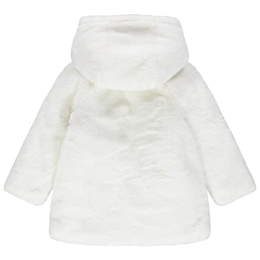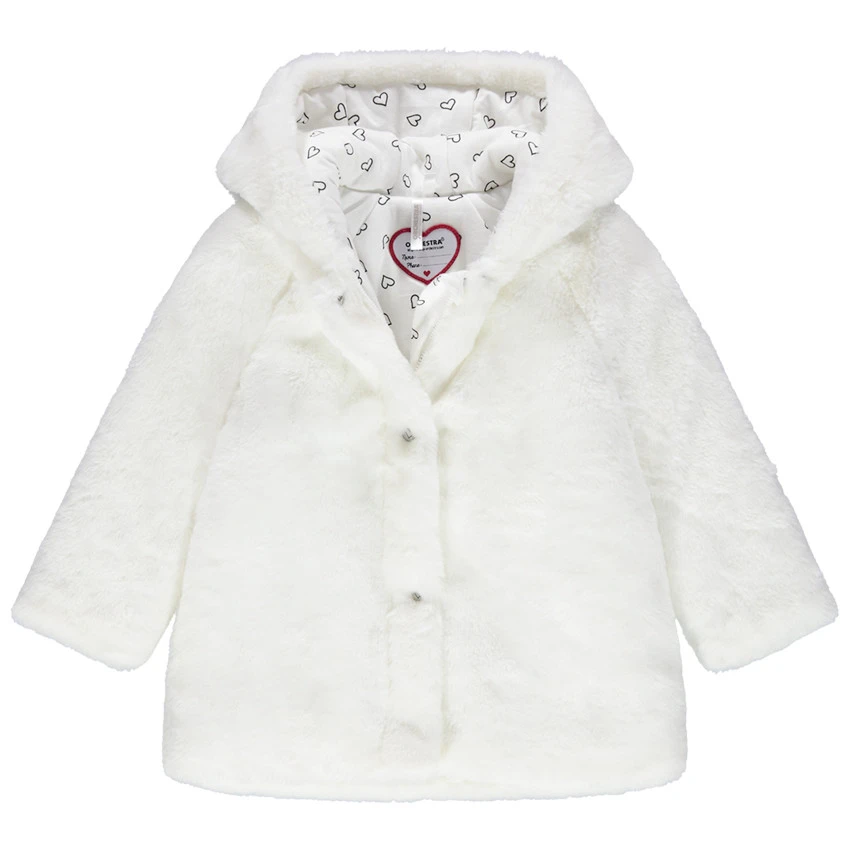 Parka en sherpa. Doublure en jersey à coeurs. Ouverture zippée et pressionnée devant.