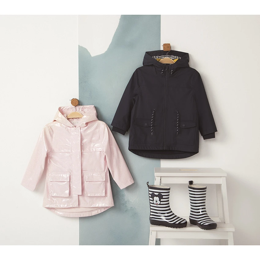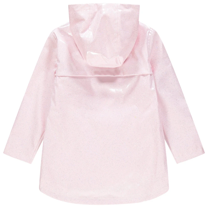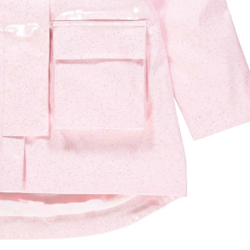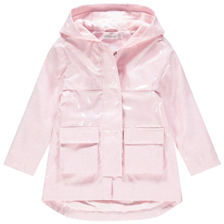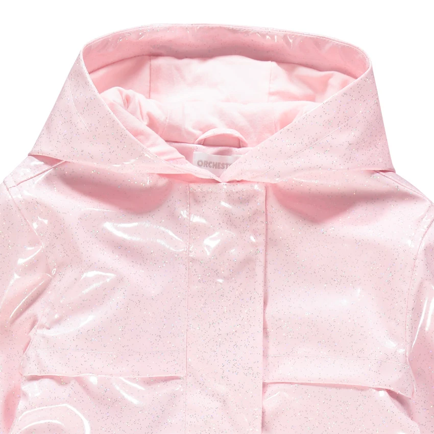 Parka à capuche vernie. Enduction pailletée. Doublure en jersey. Ouverture zippée sous patte pressionnée. 2 larges poches à rabat sur le devant. Légèrement plus longue au dos.