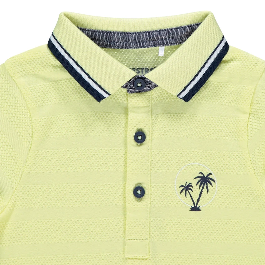 Polo manches courtes en coton bio piqué. Effet de rayures en relief. Col polo à rayures contrastées. Ouverture boutonnée sur le devant. Motif brodé sur la poitrine.