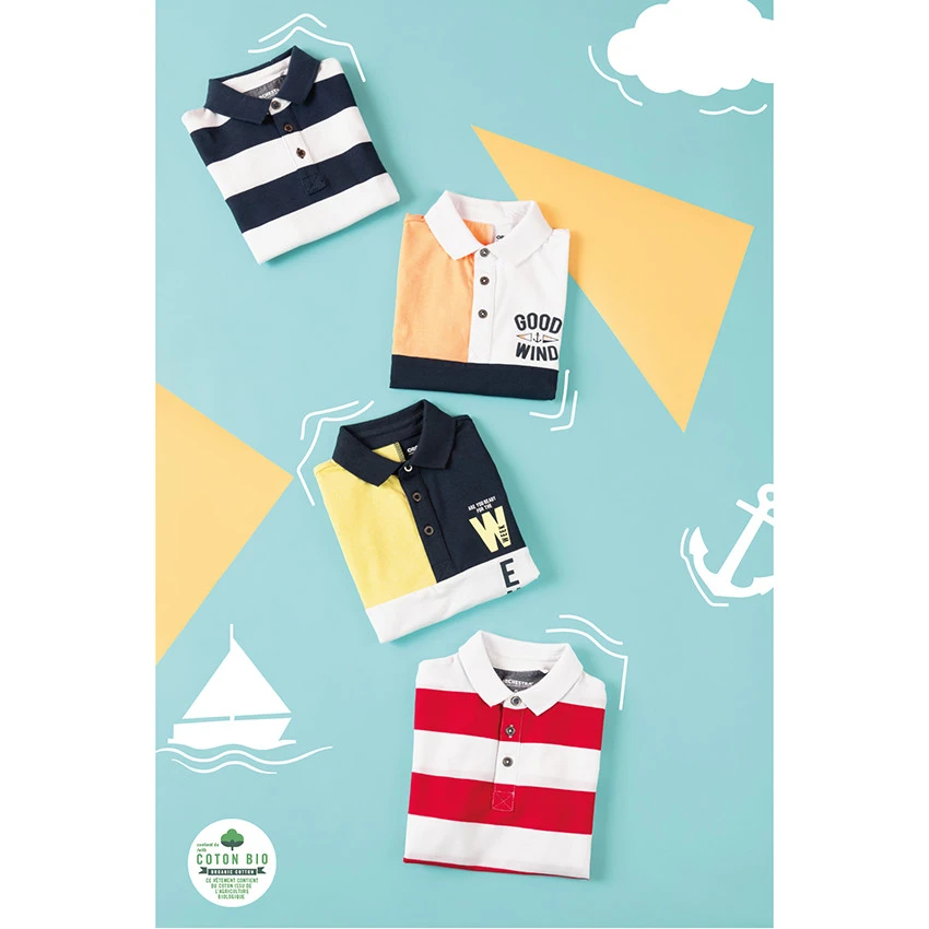 Polo rayé manches courtes en coton issu de l’agriculture biologique. Col polo à ouverture boutonnée.