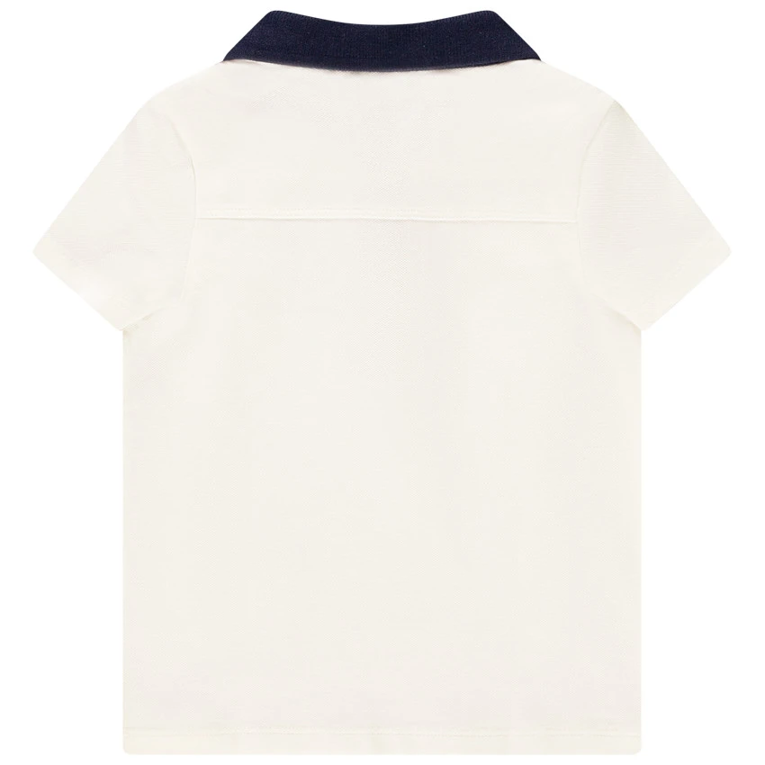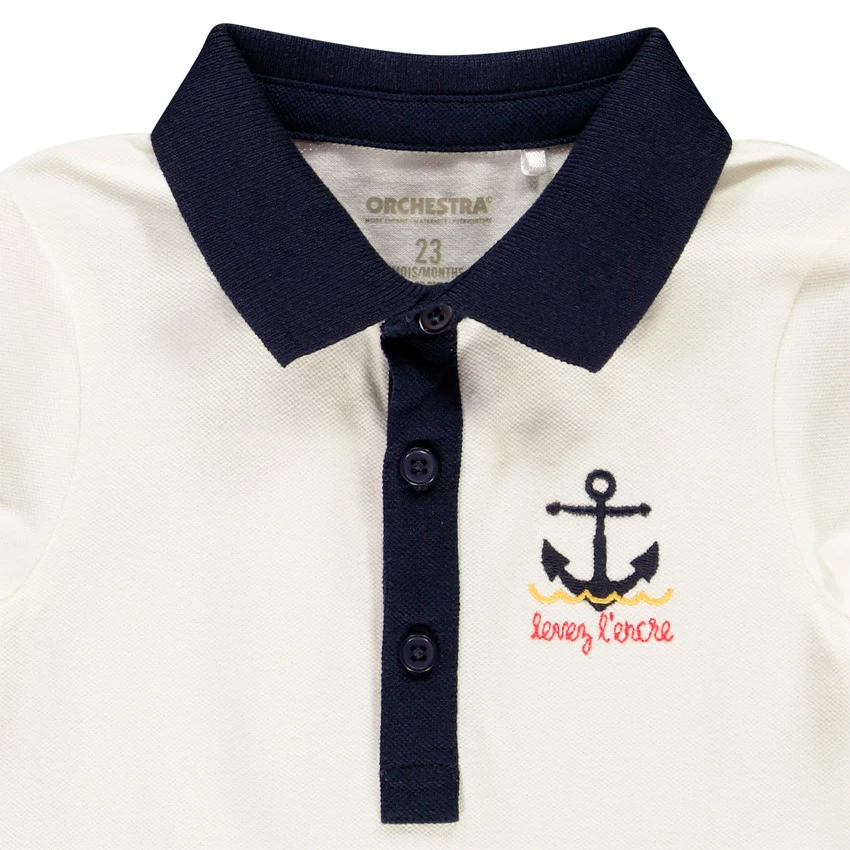 Polo manches courtes. Col contrasté. Motif encre avec message sur la poitrine. Dos uni.
