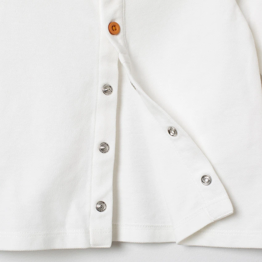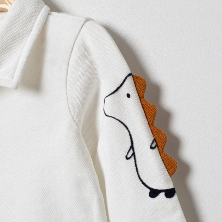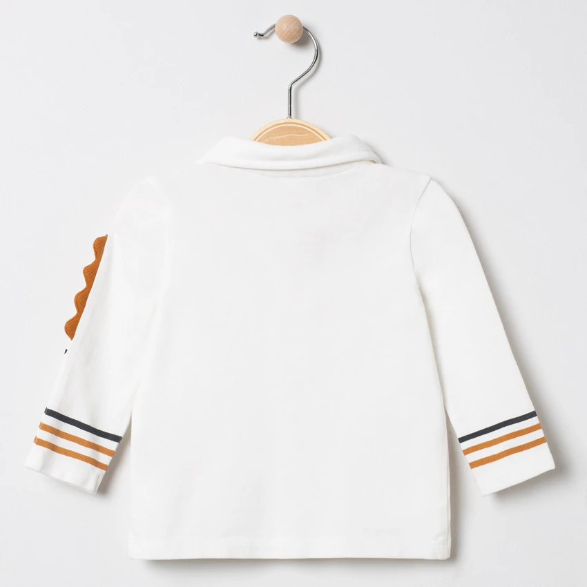 Polo manches longues uni. Col polo boutonné devant. Hérisson printé sur la manches avec détails en relief. Bandes contrastées sur le bout des manches.