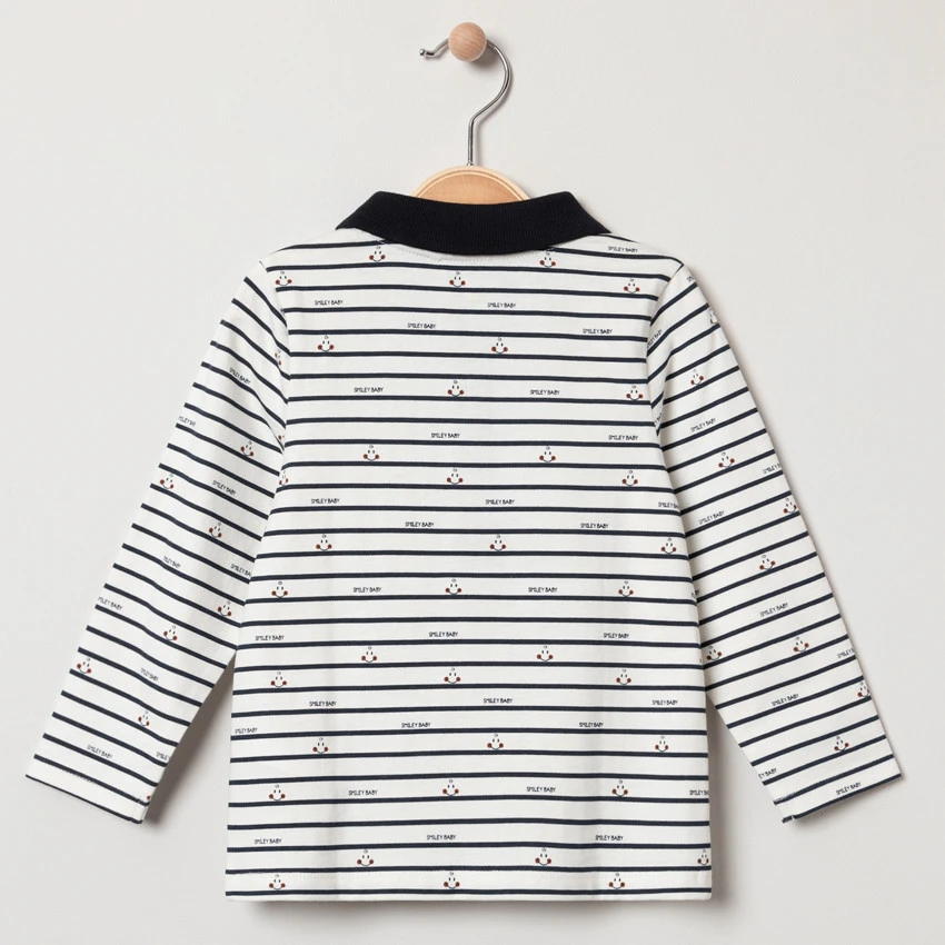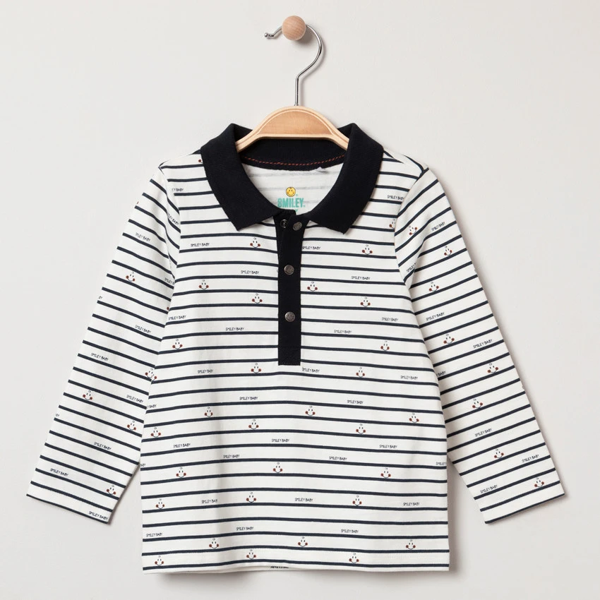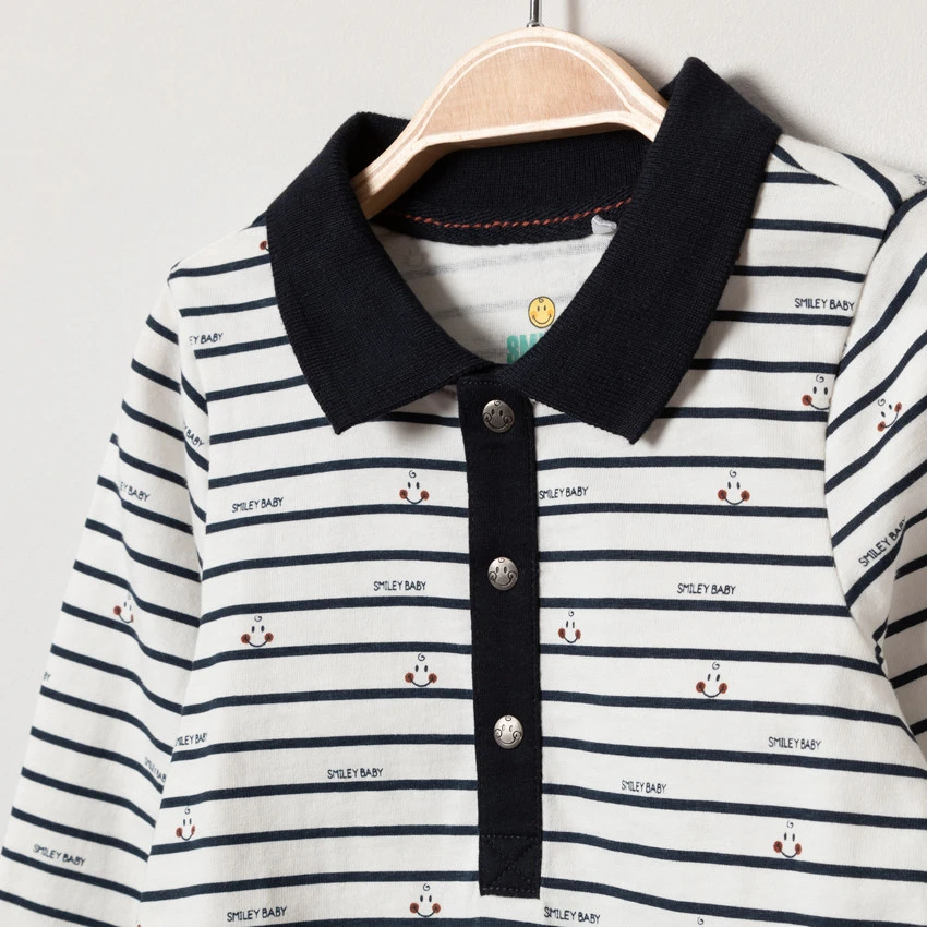 Polo manches longues à rayures. Col polo uni. Boutonnière sur le devant. Motif SmileyWorld all-over.