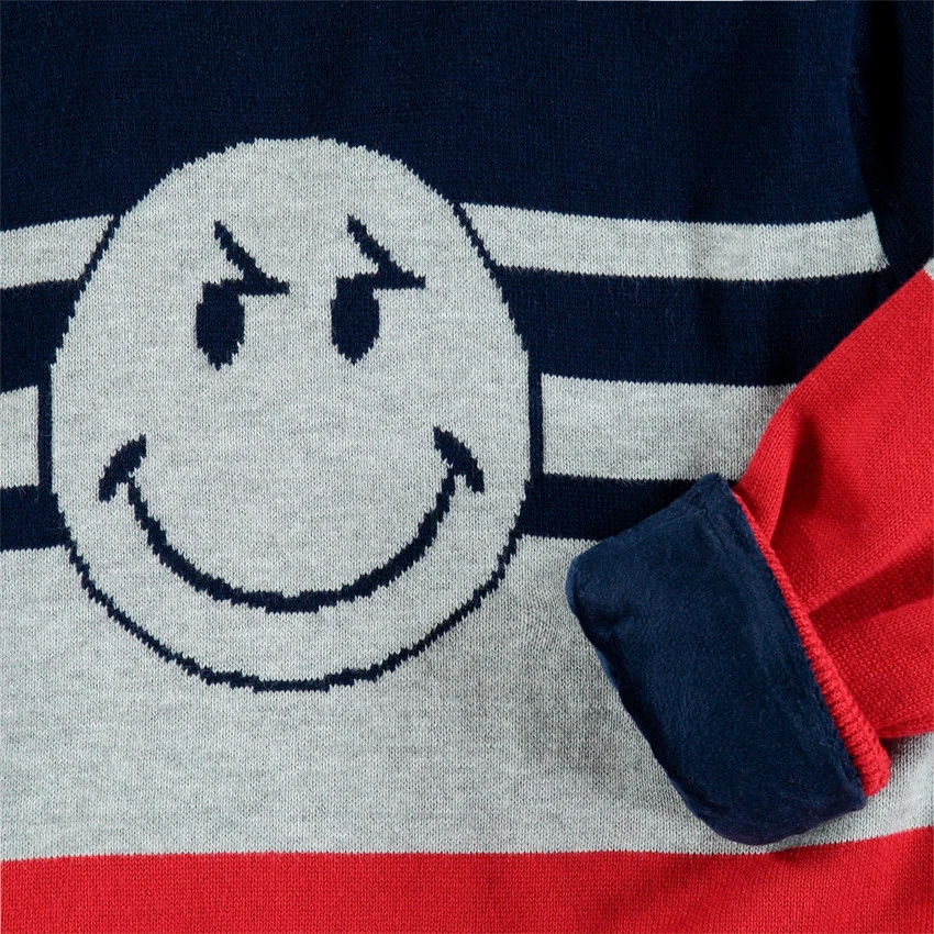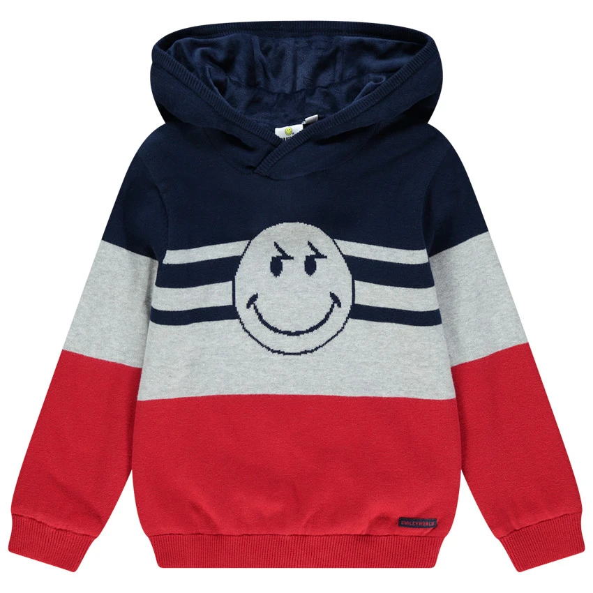 Pull à capuche en tricot. Doublure en sherpa. Motif et bandes SmileyWorld ». Base et poignets en maille extensible.