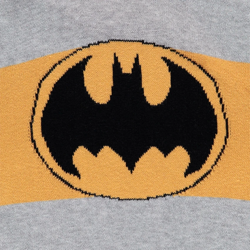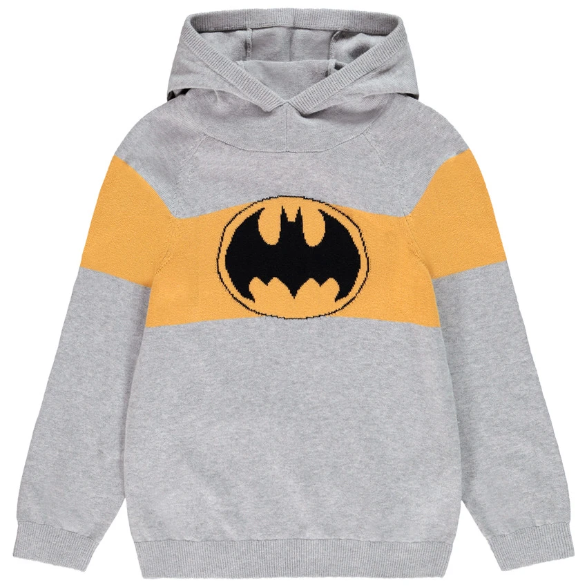Pull à capuche en tricot pour enfant garçon. Logo Batman sur le devant. Poignets et base en maille extensible. Manches raglan pour plus de liberté de mouvements et l’enfiler facilement. Dos contrasté.