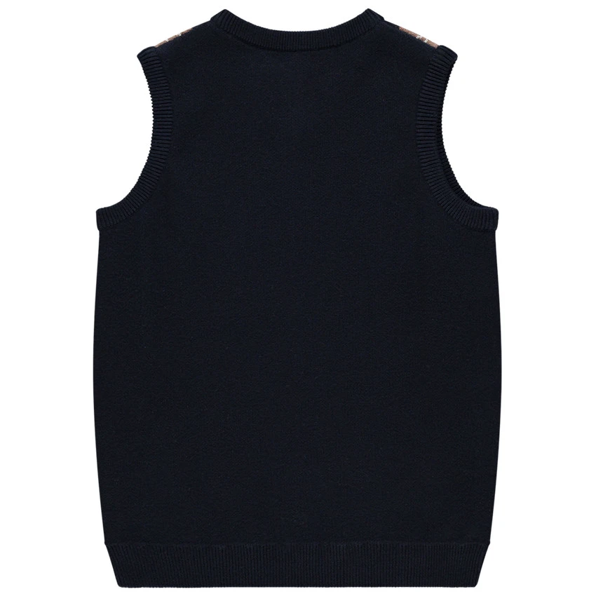 Pull sans manches à losanges en jacquard. Col V en bord-côte. Finitions en bord-côte. Dos uni.