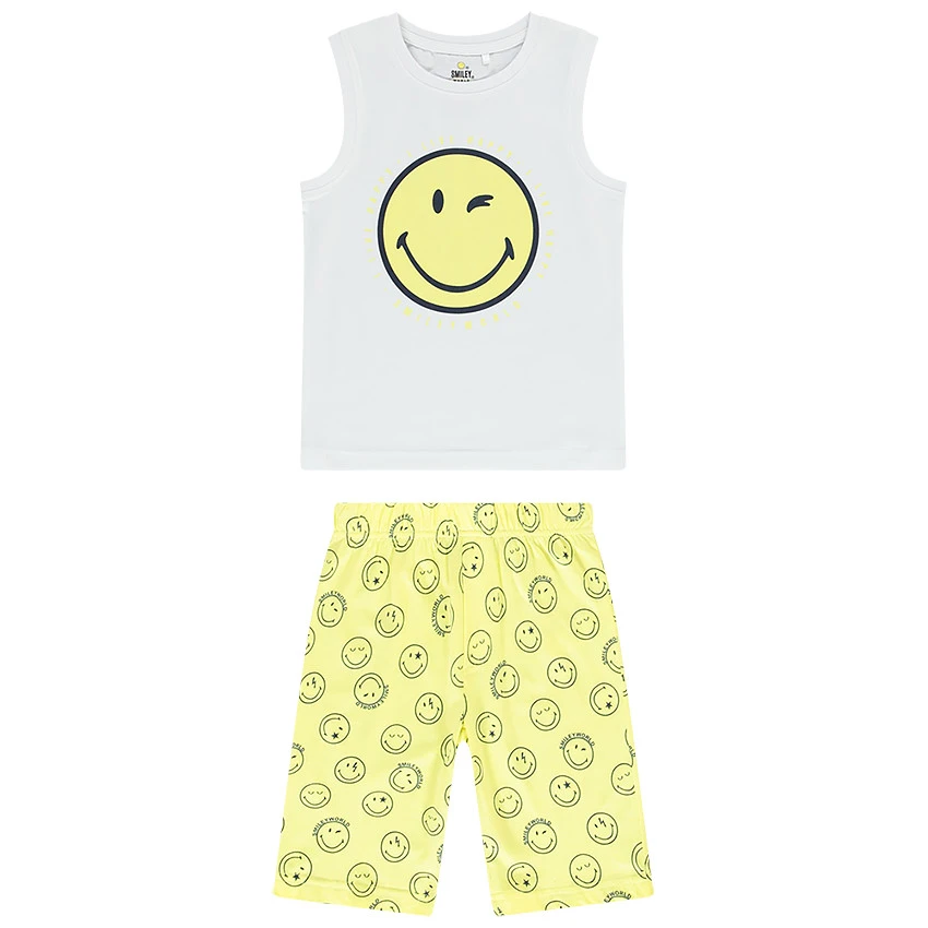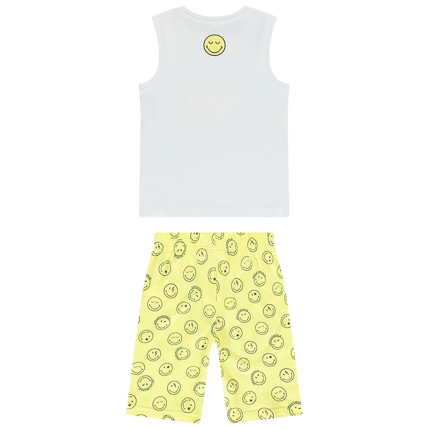 Débardeur encolure ronde et emmanchures en bord côte. Print Smiley devant et derrière.