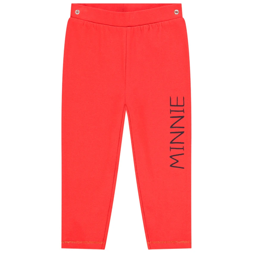 Pantalon avec taille élastiquée. Couleur unie. Print Minnie sur la cuisse. Liseré brillant sur les chevilles. Pieds fermés selon l’âge.