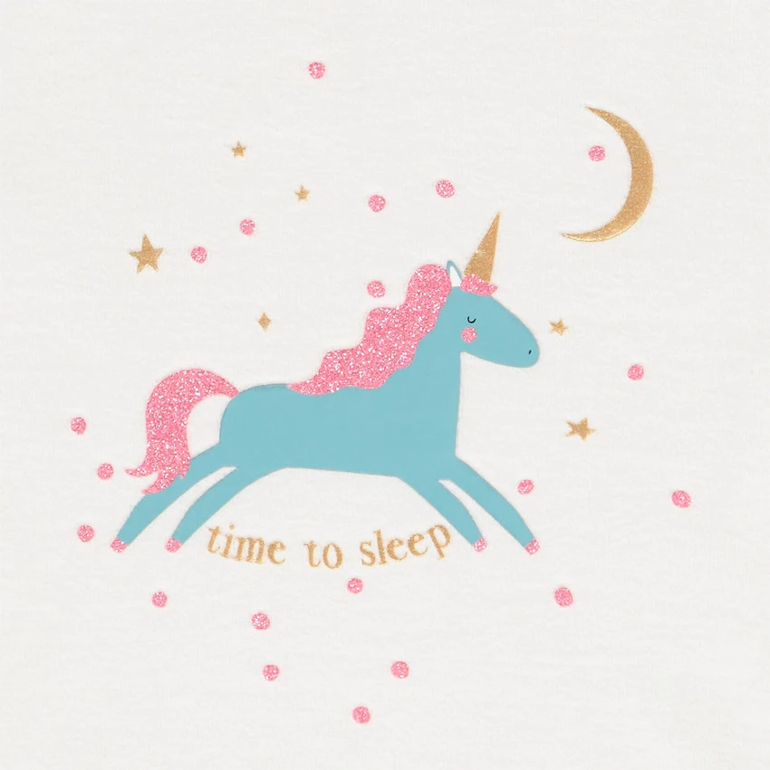 Pyjama 2 pièces. T-shirt à manches longues. Col rond en maille extensible. Print licorne sur le devant.