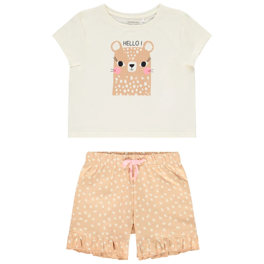 Short avec taille élastiquée. Cordon de serrage contrasté. Imprimé all-over. Cuisses volantées.