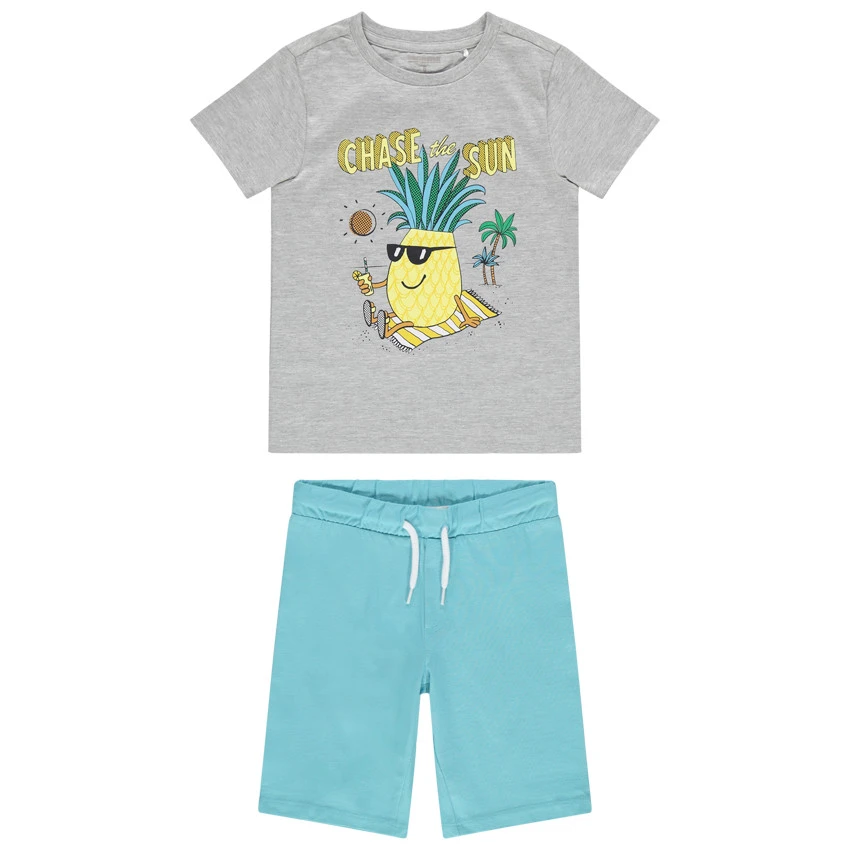 T-shirt de pyjama en jersey chiné. Encolure ronde en bord-côte. Ananas printé sur le devant. Dos uni.