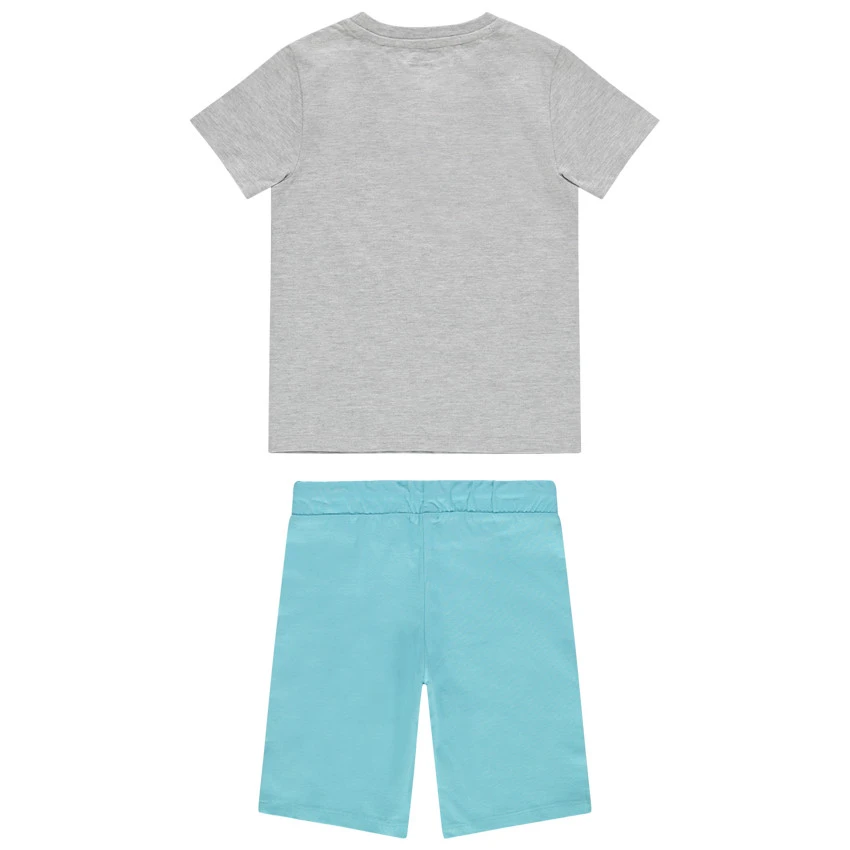 Bermuda uni bleu en jersey. Taille élastiquée avec cordons de serrage.
