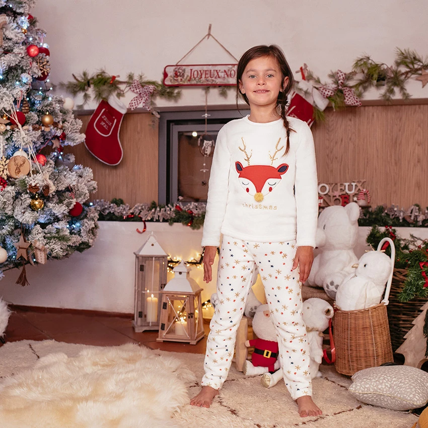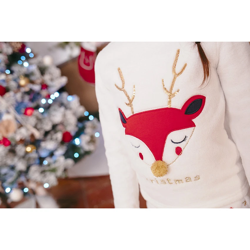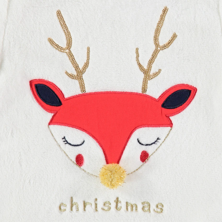 Haut de pyjama en sherpa. Encolure ronde en bord-côte. Cerf brodé avec cornes en sequins. Dos uni.