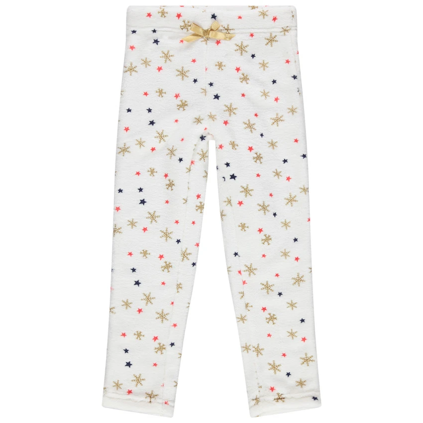 Bas de pyjama en sherpa imprimé esprit Noel. Taille élastiquée. Coupe droite. Noeud satiné sur la taille.