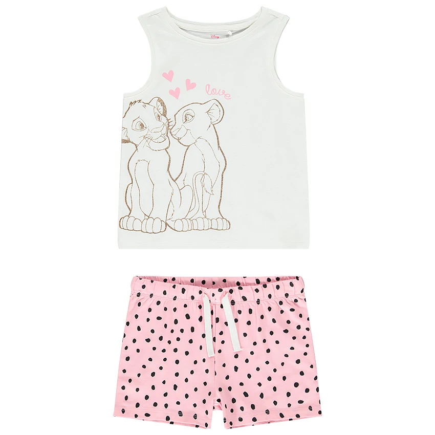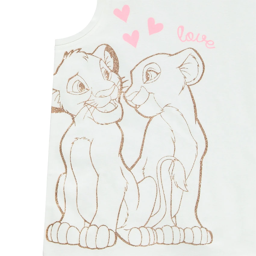 Débardeur blanc Encolure ronde. Print Le Roi Lion pailleté doré sur le devant.